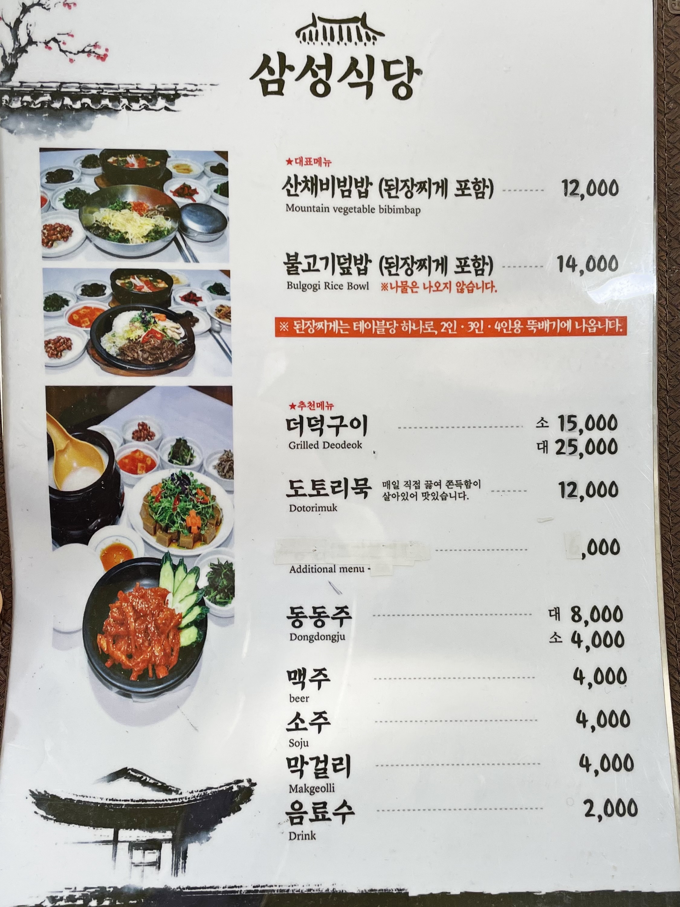 된장은 산채비빔밥 가격에 포함되어 있고요.