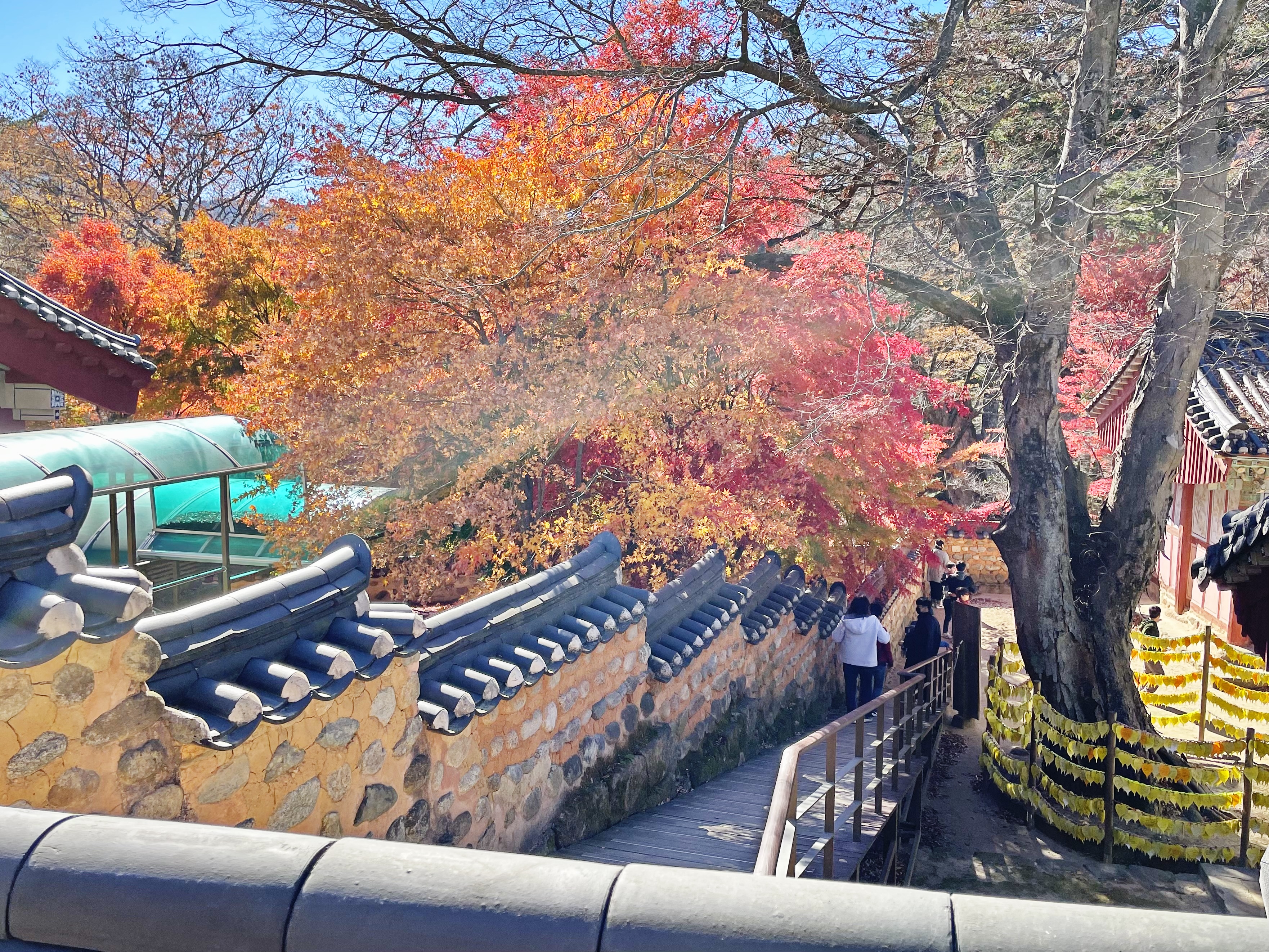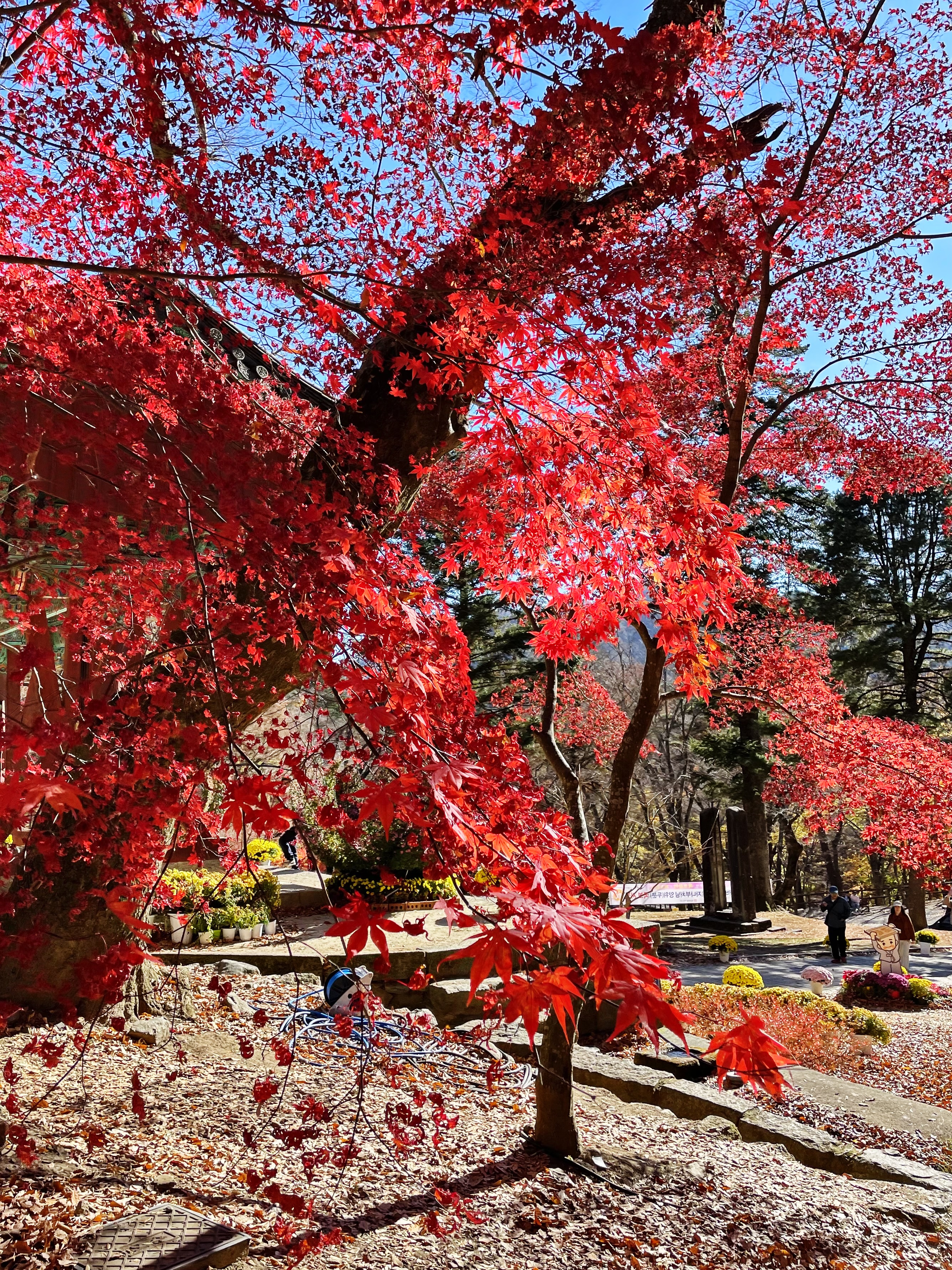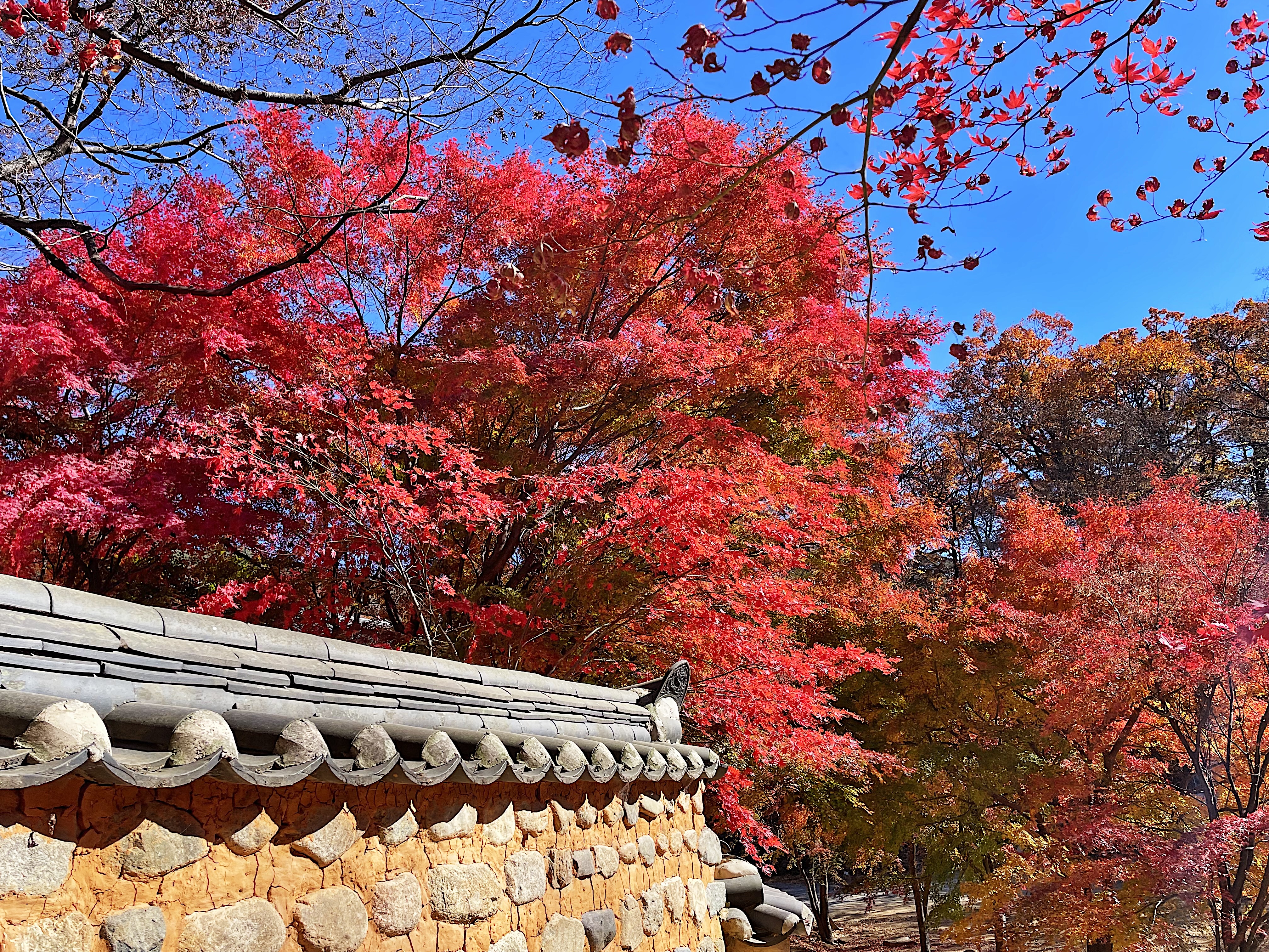 올라갈 때 보았던 1200년 된 느티나무 근처로 빨간 단풍이 제법 보여서 사진 좀 담구요.