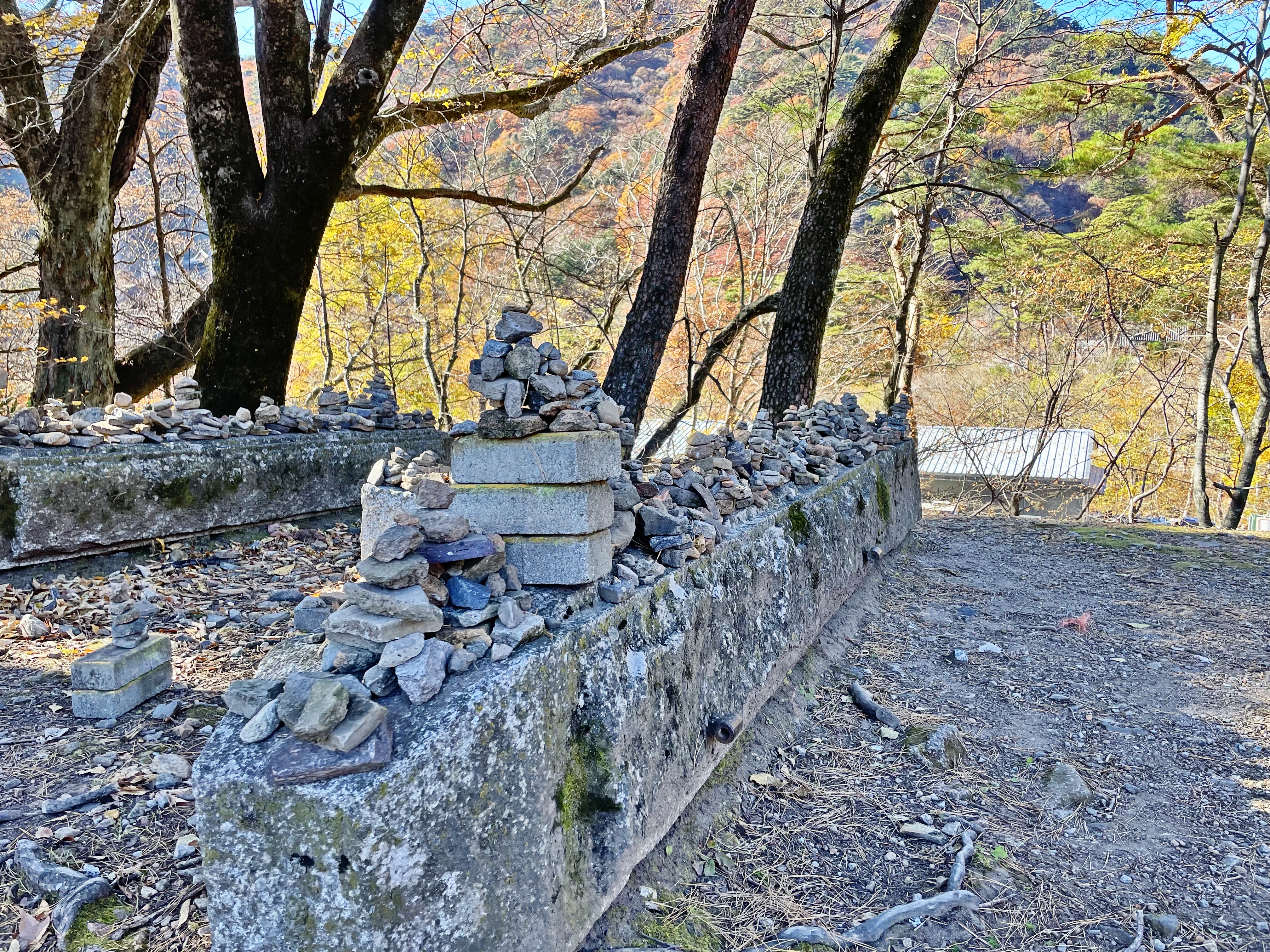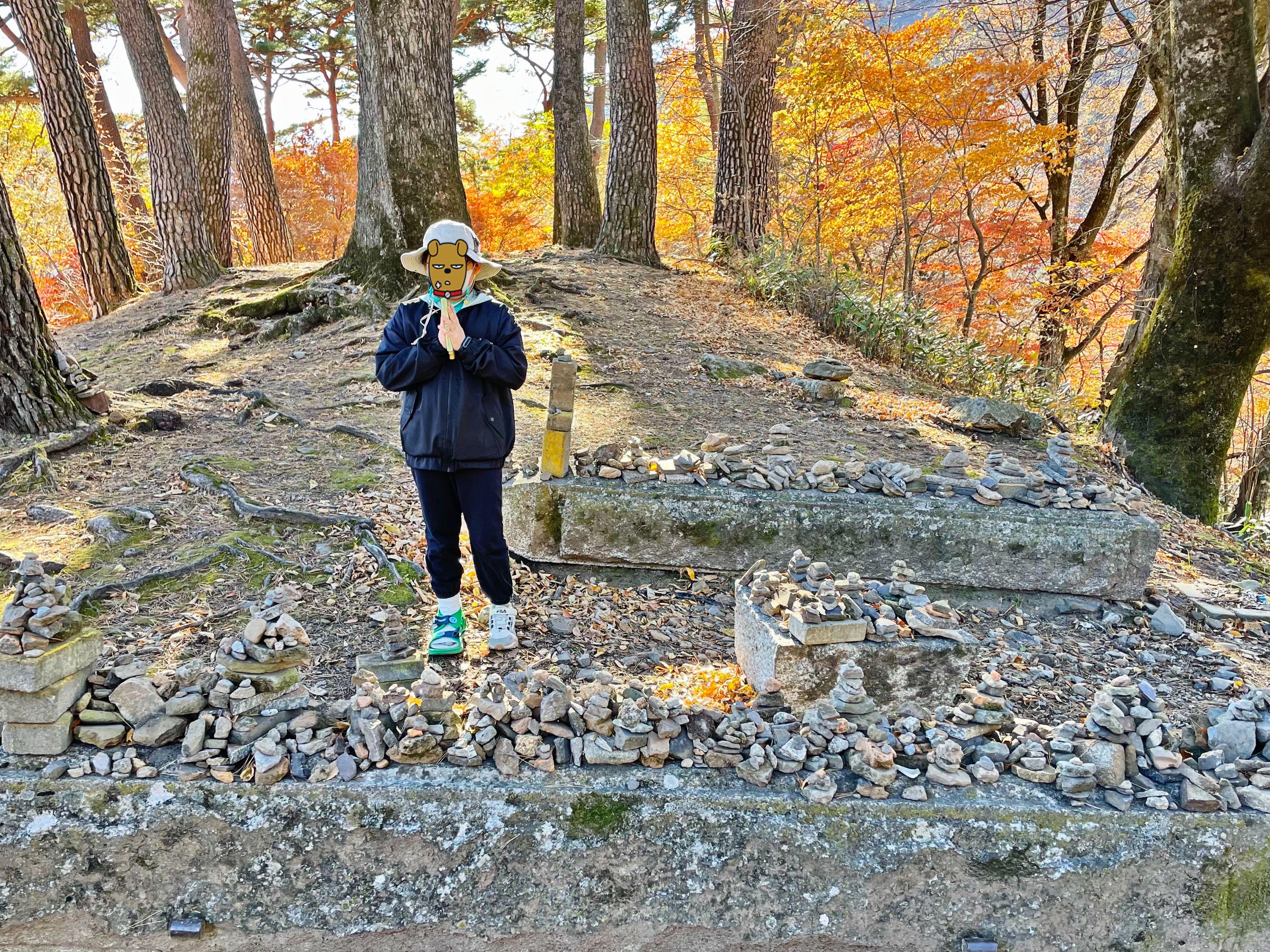 기다란 바위 위에 돌탑을 가득 쌓아놓아 저희 딸도 하나 살포시 올리고 소원을 빌었습니다.