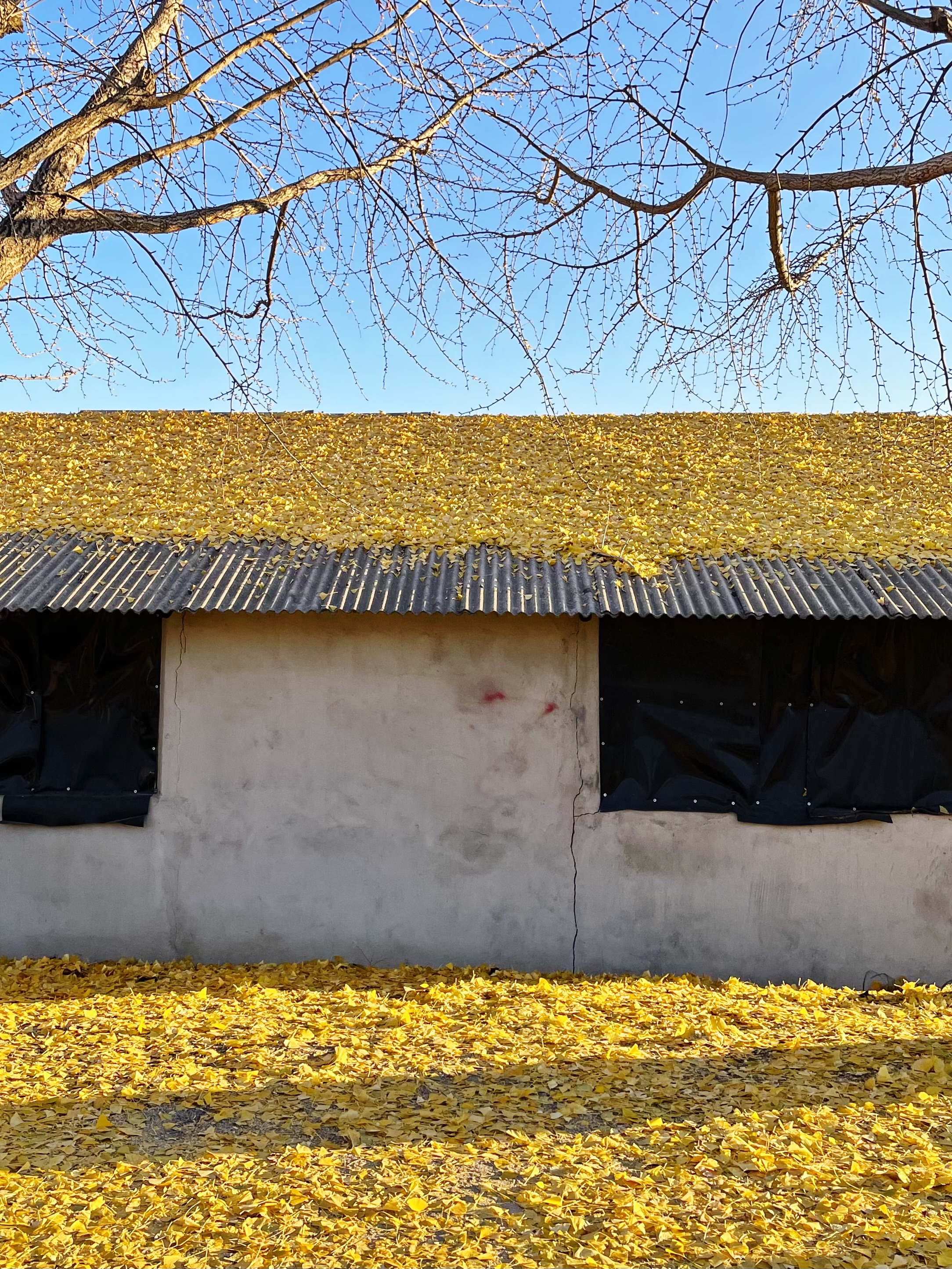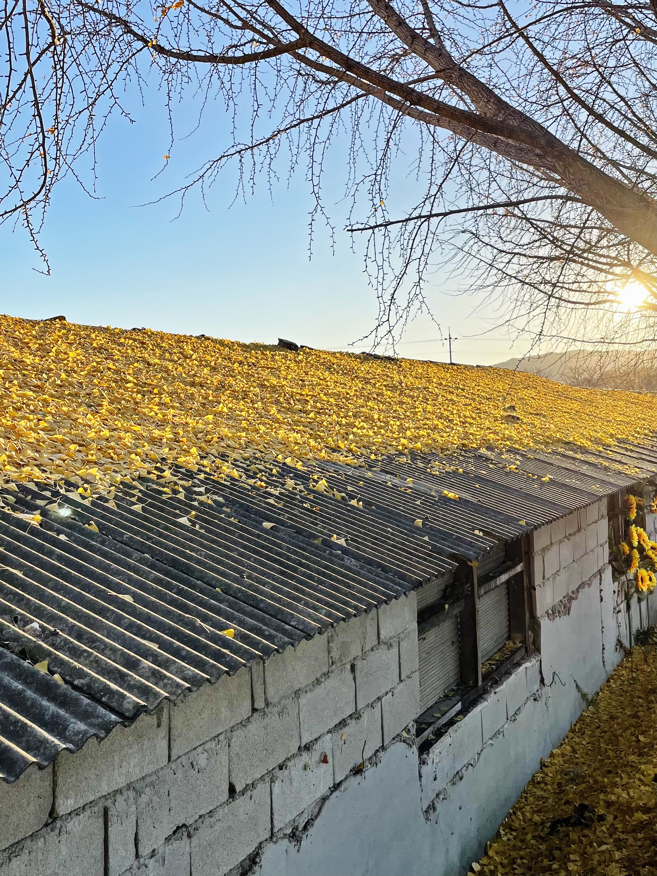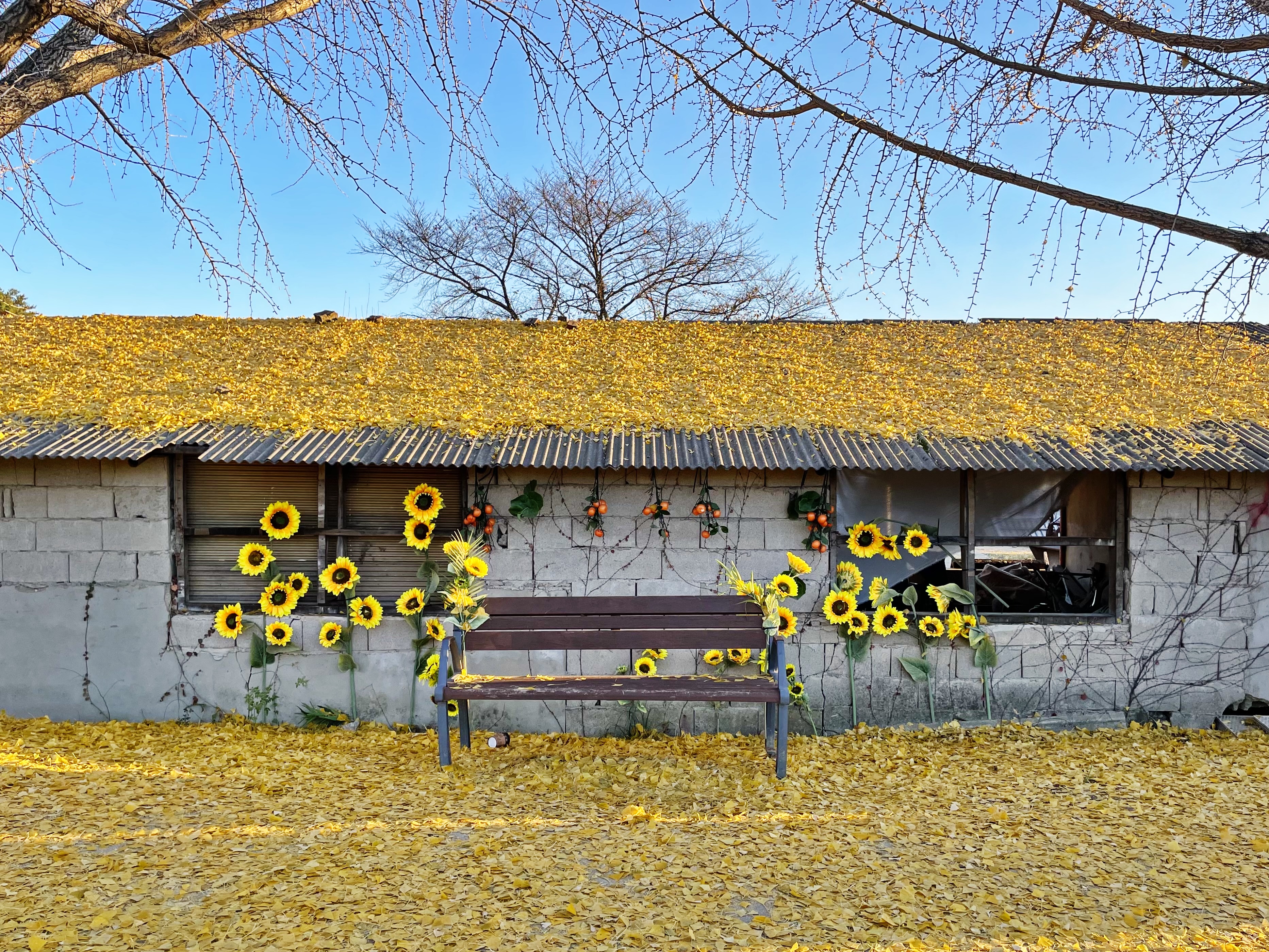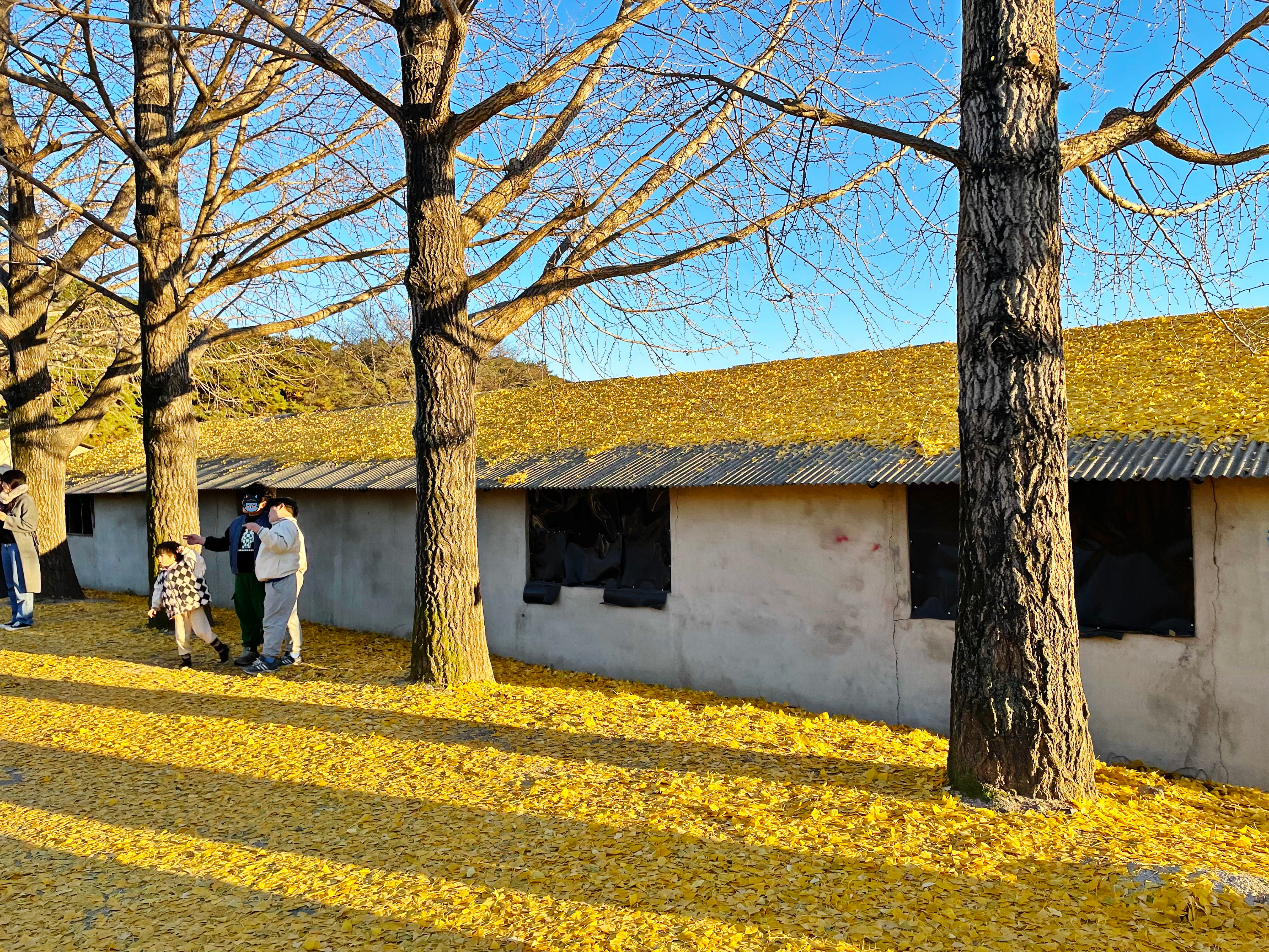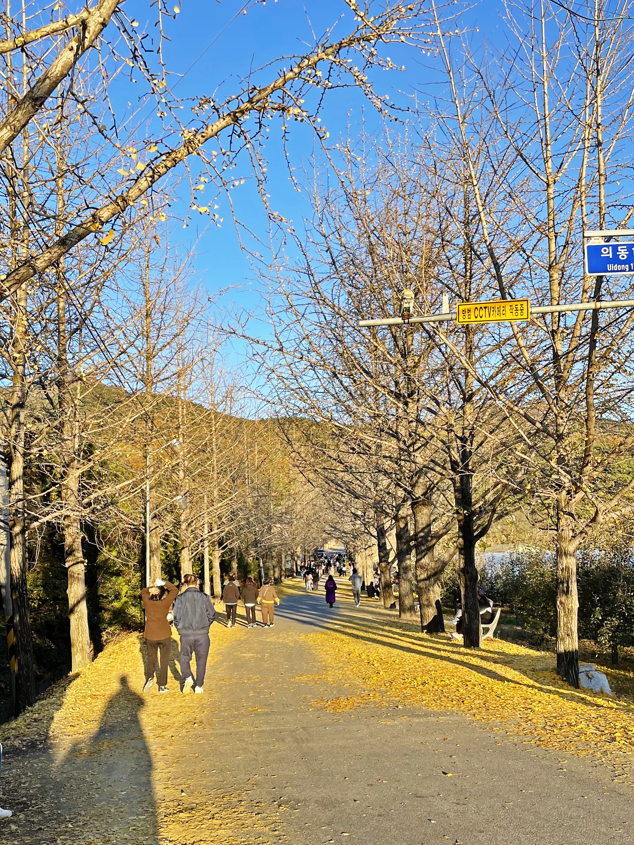 저 앞에 보이는 나무가 은행나무는 맞는 것 같은데, 앙상한 가지만 남아 있더라구요.