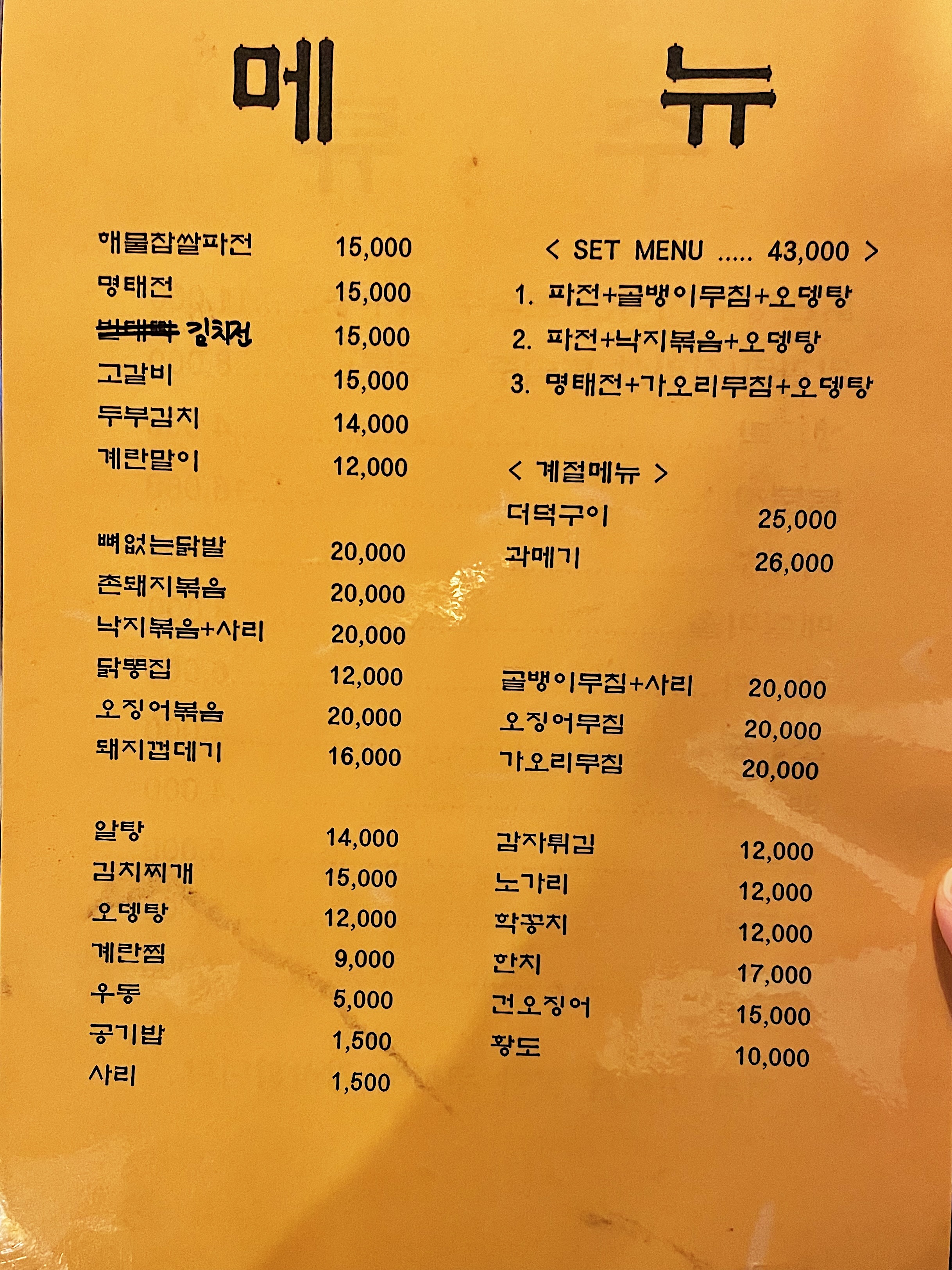 세트메뉴를 주문하려다 일단 파전과 알탕을 주문하려고 했는데요.