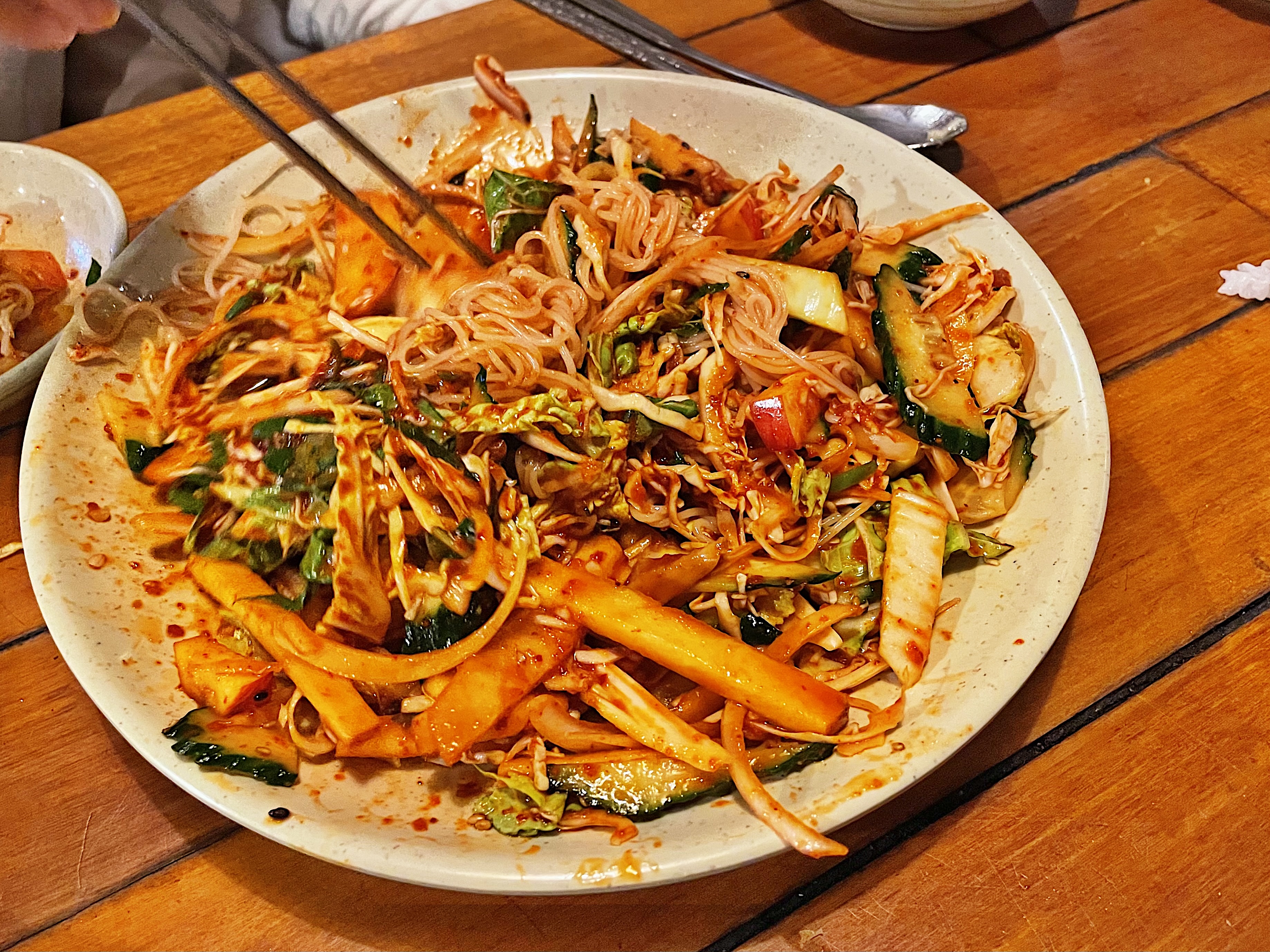 가격은 2만 원으로 제법 비싼 편이지만, 국수사리도 크게 세 덩어리 들어 있고 야채도 맛있었습니다.