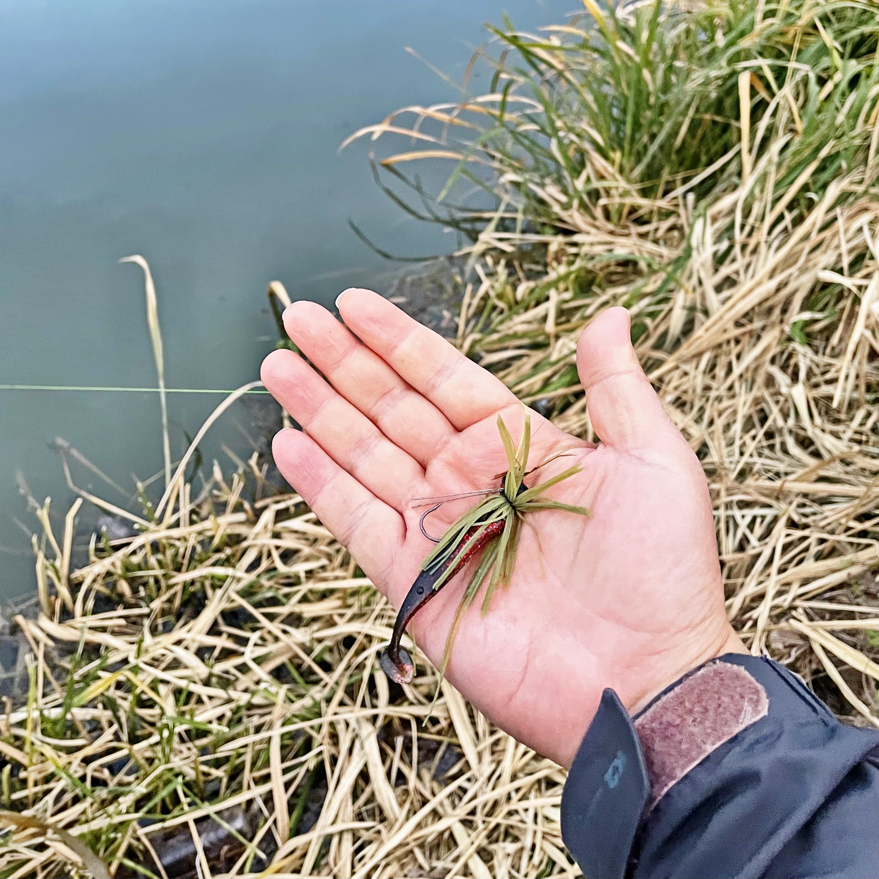 도착 후 네번 째 캐스팅에 바로 바이트를 받고 요리조리 힘겨루기를 하는 도중 쑤욱~ 웜과 함께 물고기도 빠져버렸습니다.
