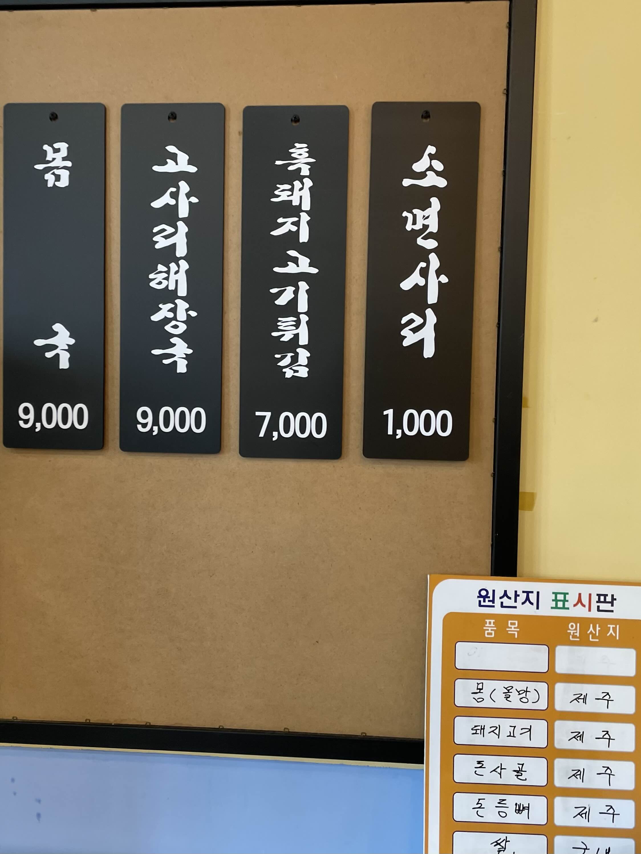 몸국과 고사리 해장국, 흑돼지 고기튀김이 전부입니다.