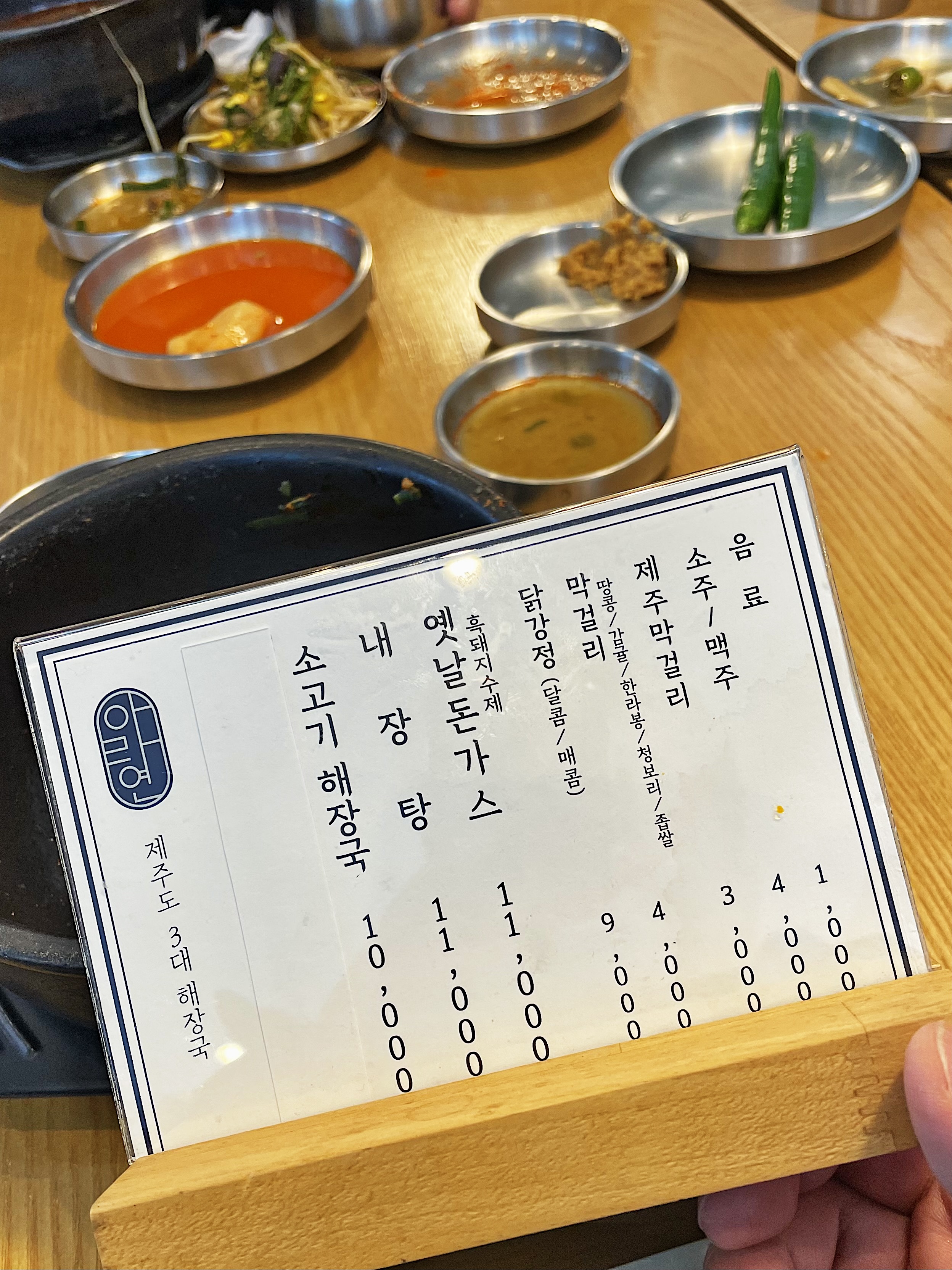 우측에 작은 글씨로 "제주도 3대 해장국"이라는 글자가 눈에 띄었습니다.