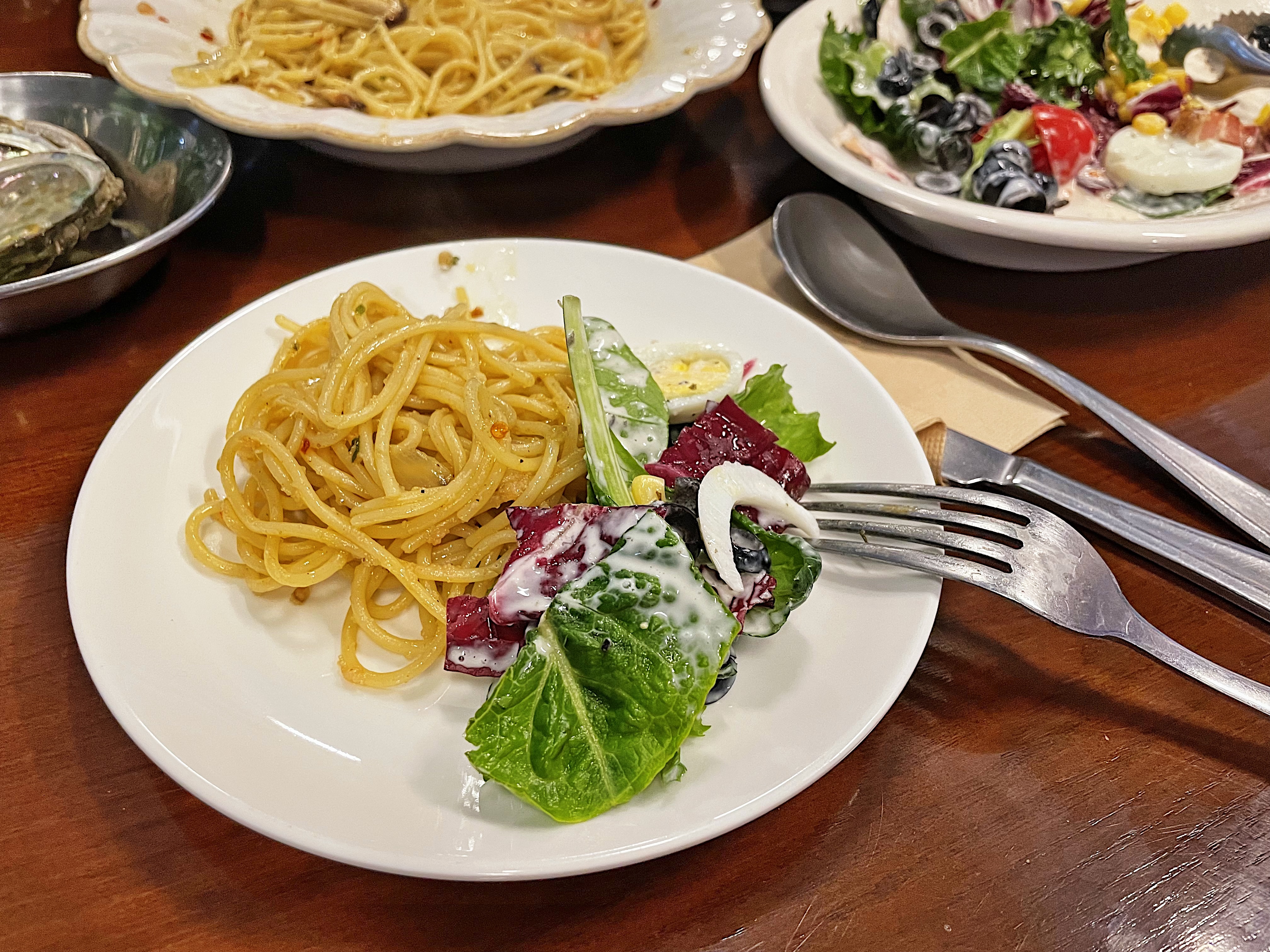 개인접시에 덜어서 전복명란파스타와 콥샐러드 함께 먹으니 JMT!