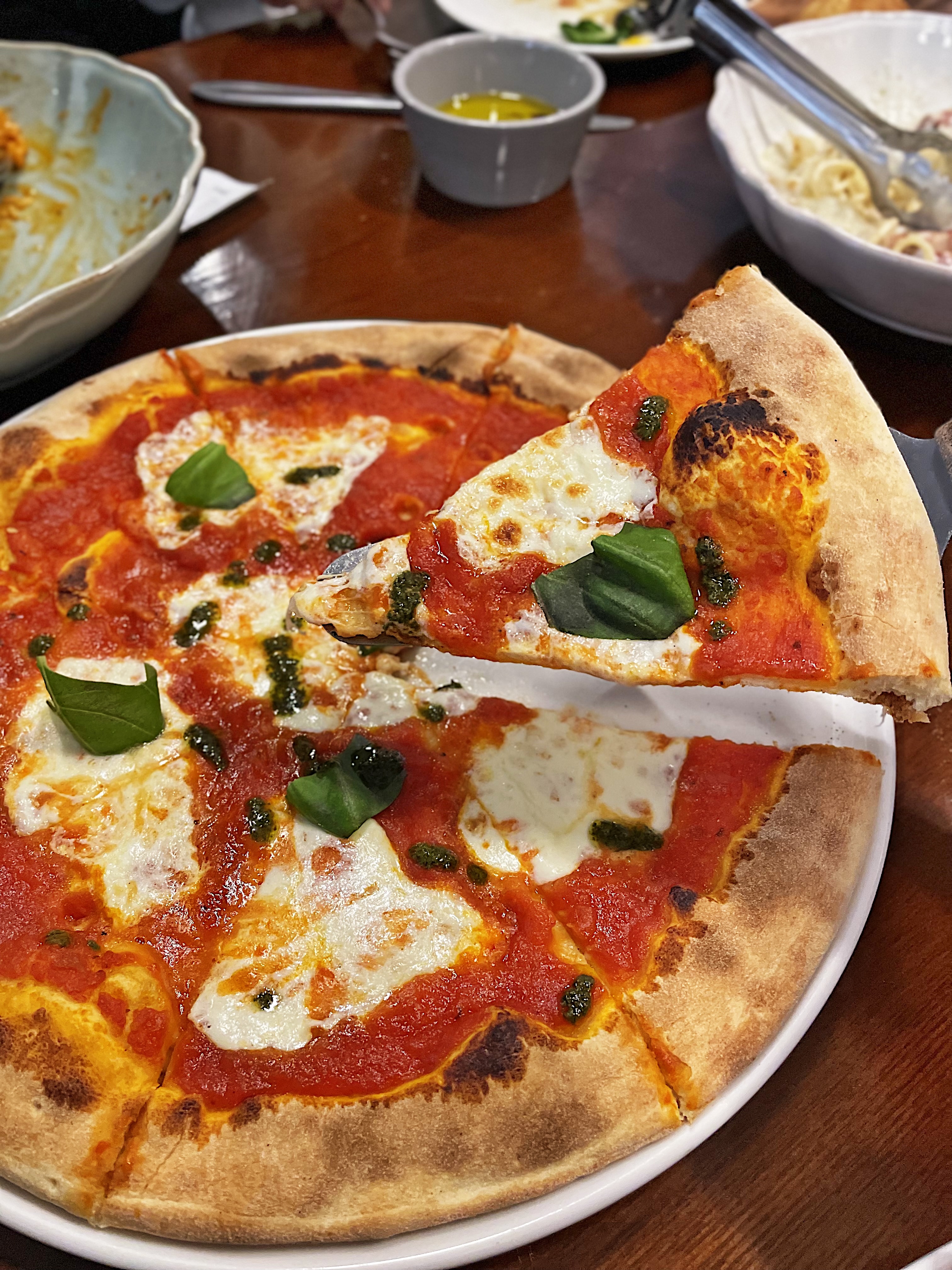 마지막으로 토마토소스에 생모짜렐라 치즈와 바질이 올라간 마르게리따 피자도 나왔습니다.