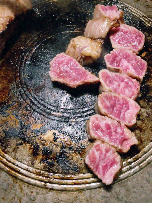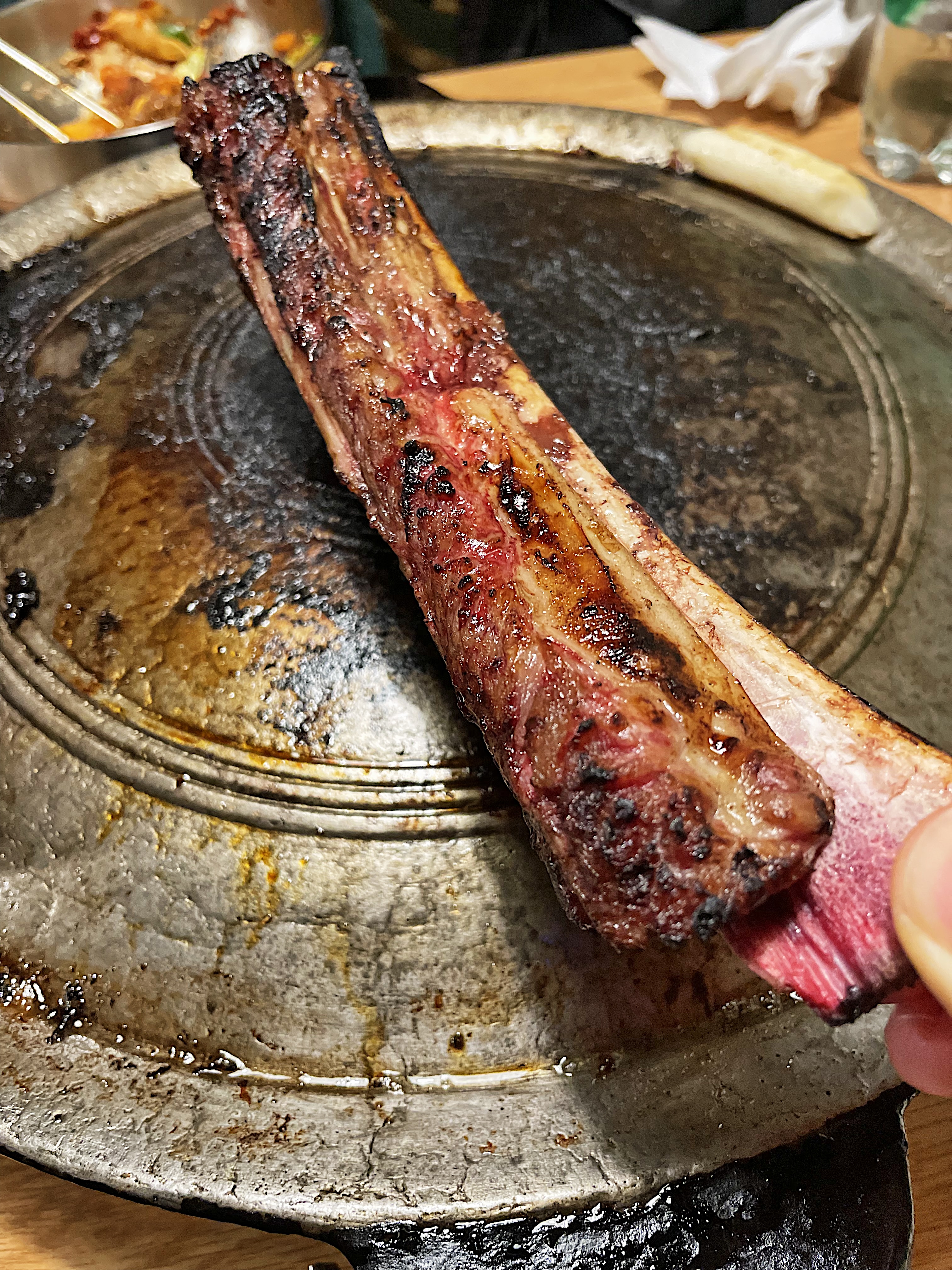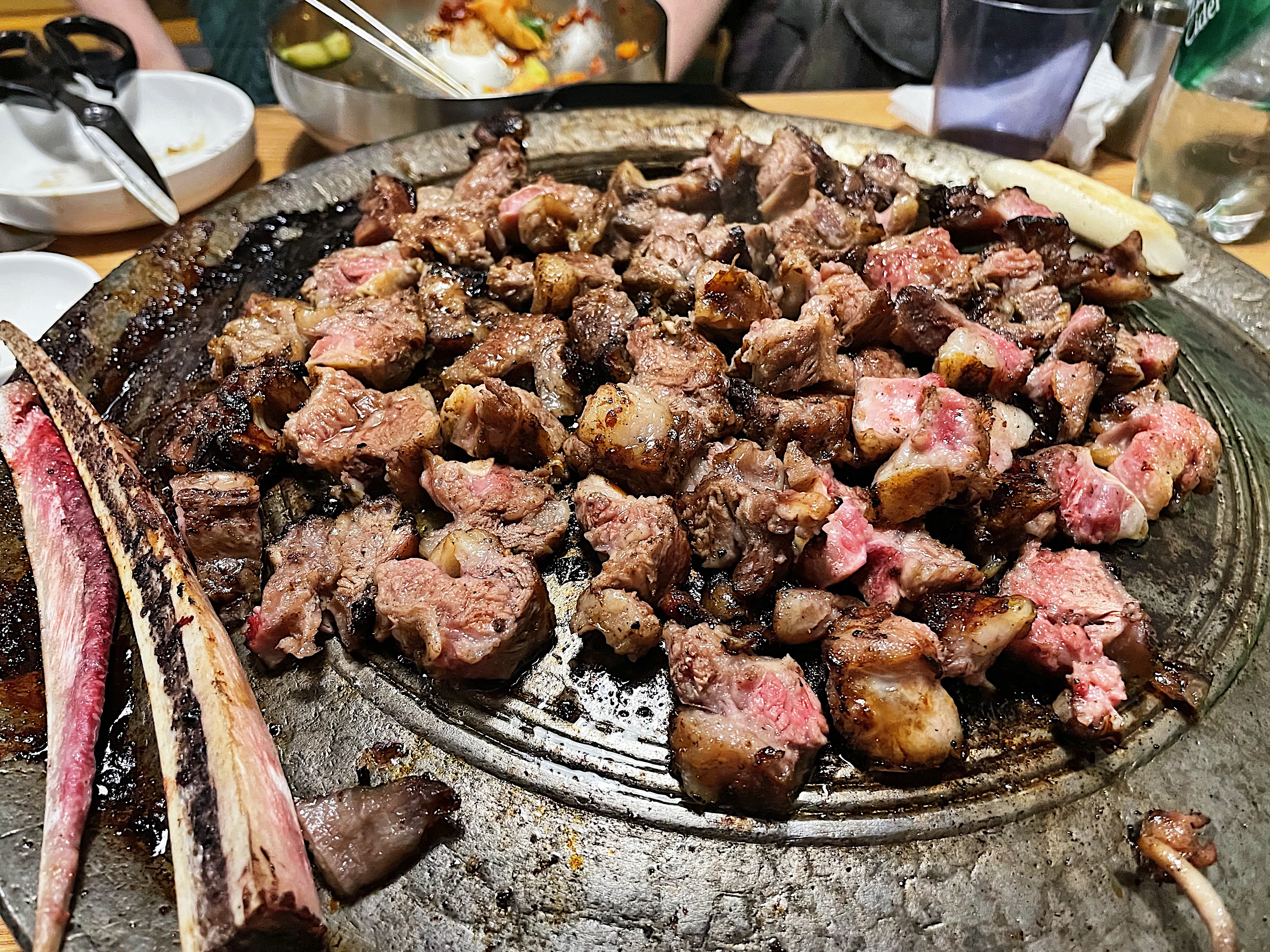다 먹은 줄 알았던 뼈에 붙은 살점을 잘라 놓으니 새로운 고기가 솥뚜껑 위에 한판 가득 다시 세팅된 기분이었습니다.