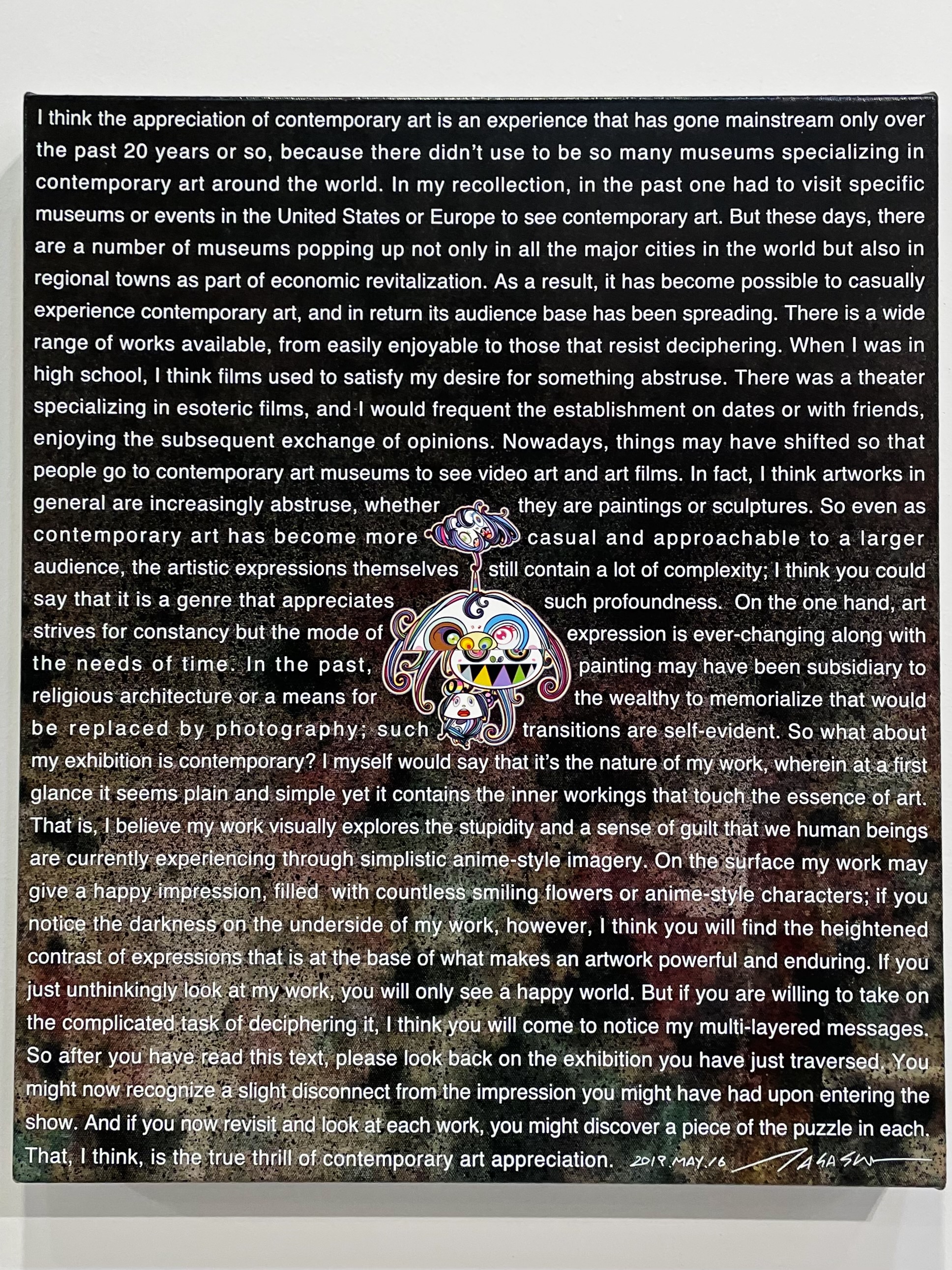 전시장 외벽에는 가로로 길게 '무라카미 다카시'의 약력과 일본사/세계사를 길게 적어 놓았습니다.