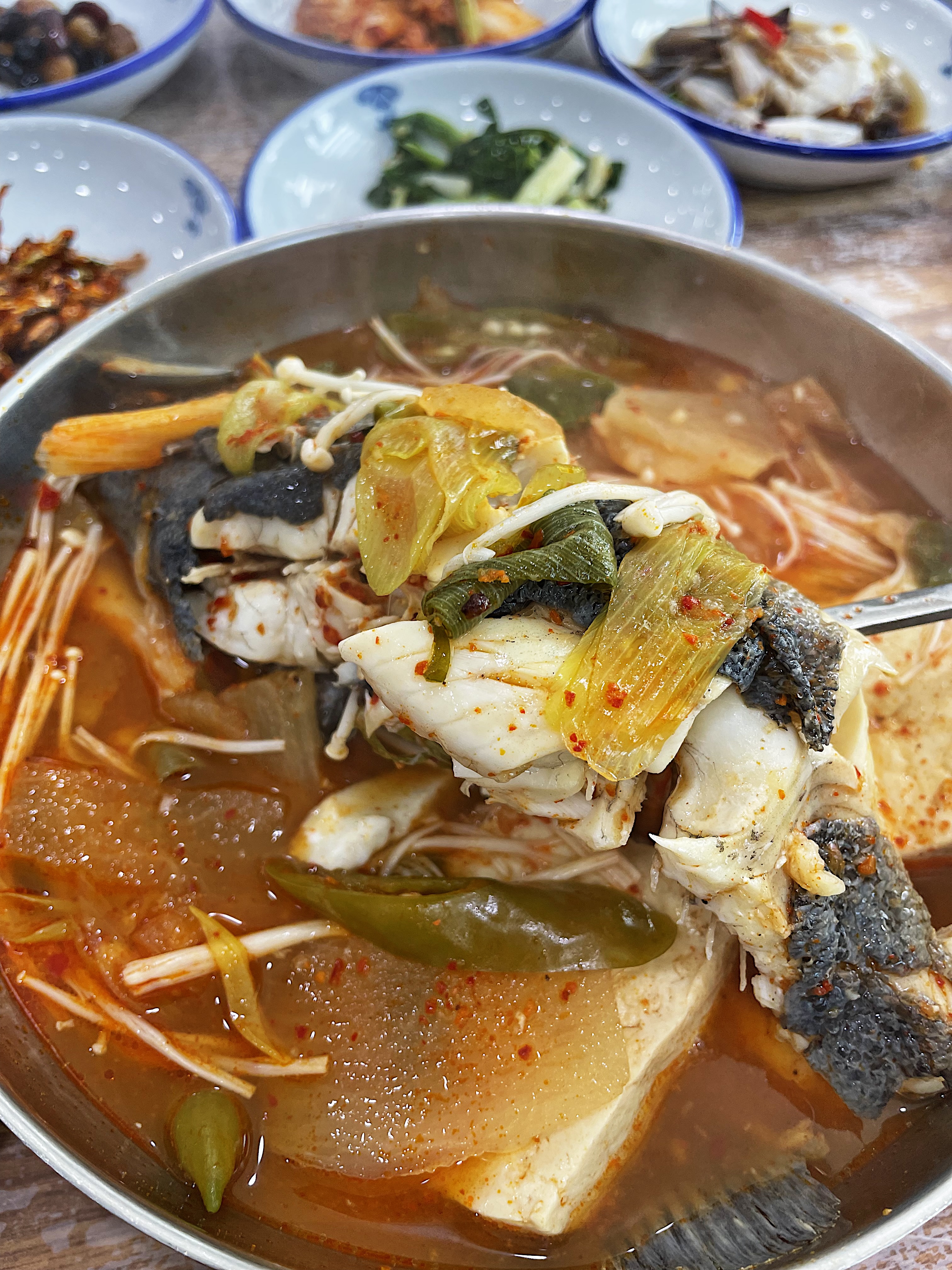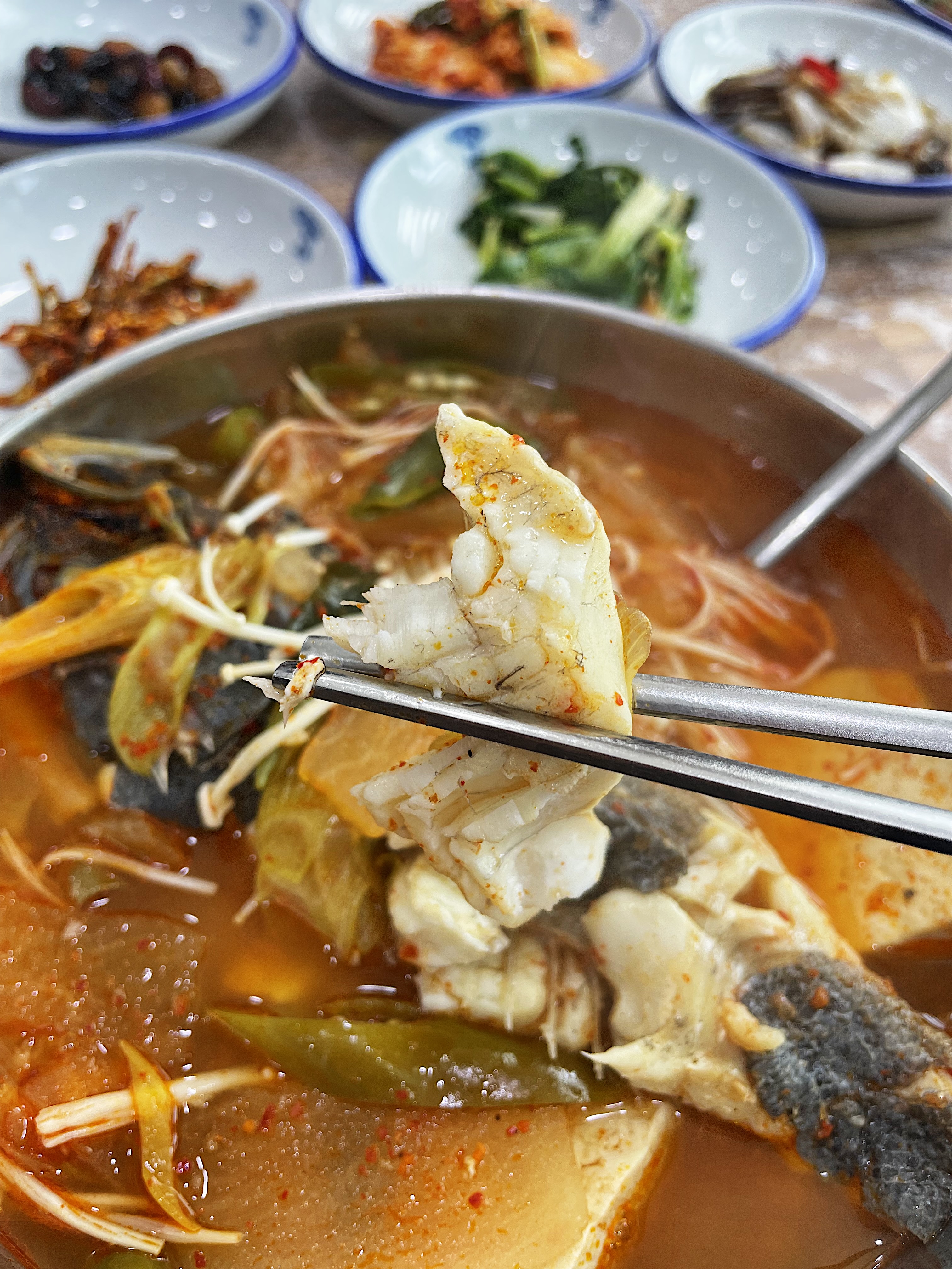 매운탕은 커다란 뚝배기를 가운데 내어주는 방식이 아니라 1인당 한 그릇씩 나오는데요.