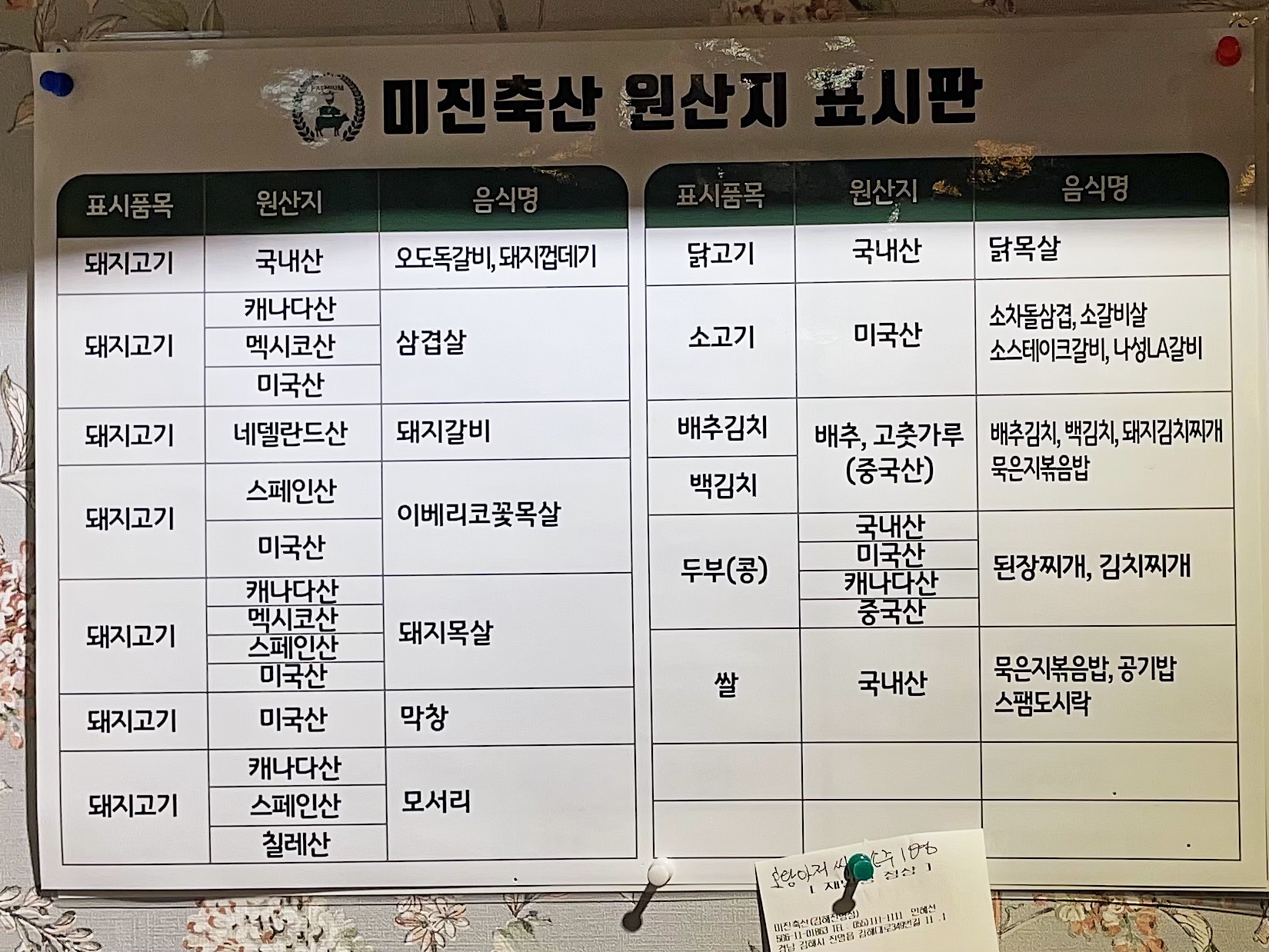 가격이 저렴한만큼 대부분의 고기와 식자재들은 수입산을 사용하고 있습니다.