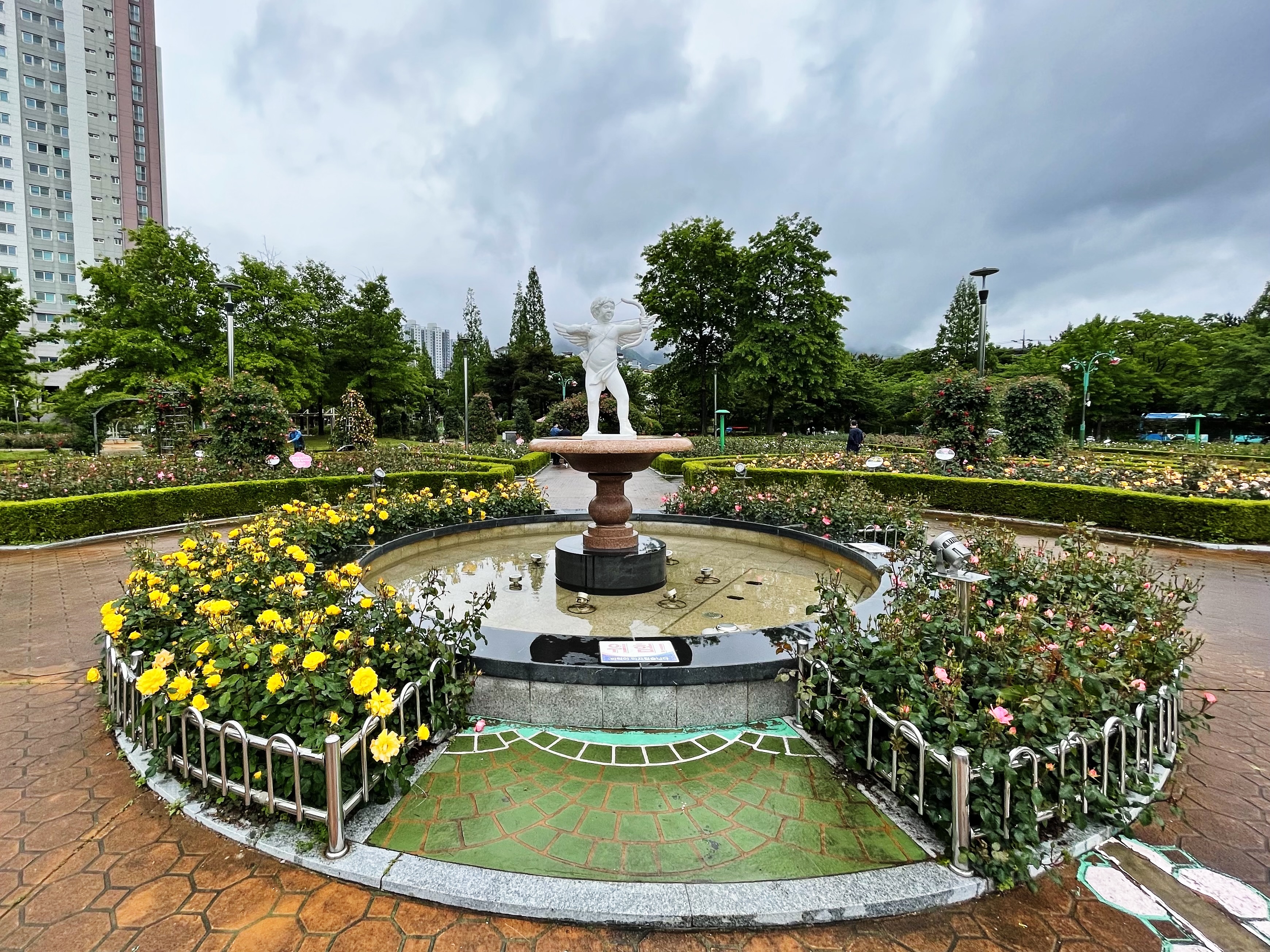 중앙에는 큐피트 형상의 분수대와 장미터널 11개소, 장미탑 43개소, 경관조명 4개소,