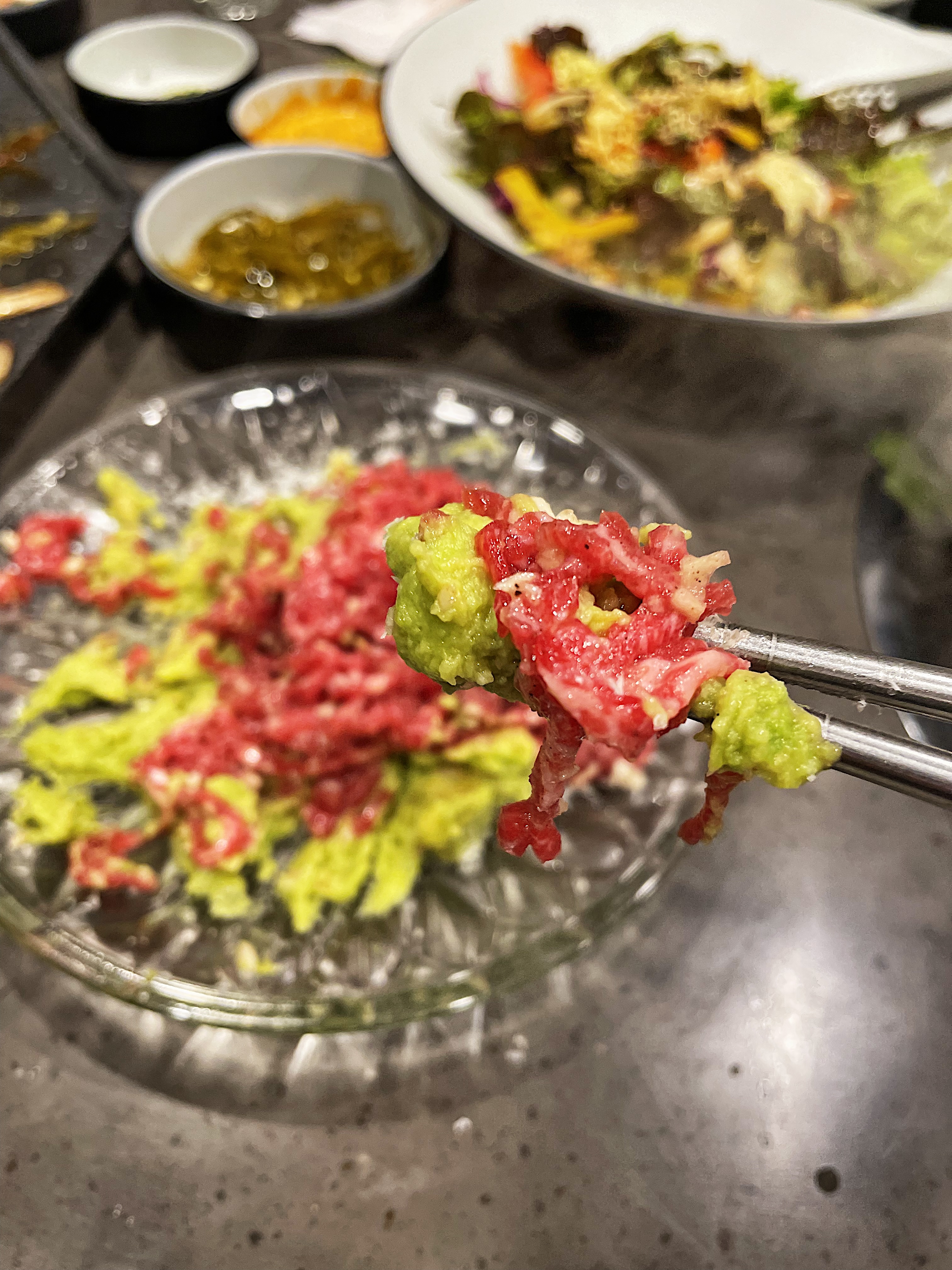 육회의 고기도 신선하고, 아보카도의 은은한 고소한 맛과의 조화도 아름답습니다.