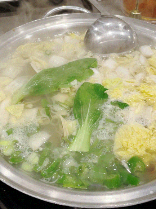 알배추와 청경채 아래로 조개가 살짝 들어간 국물 시원한 조개탕도 최초 기본 제공되고 추가 주문 시 비용(5천 원)이 발생된답니다.