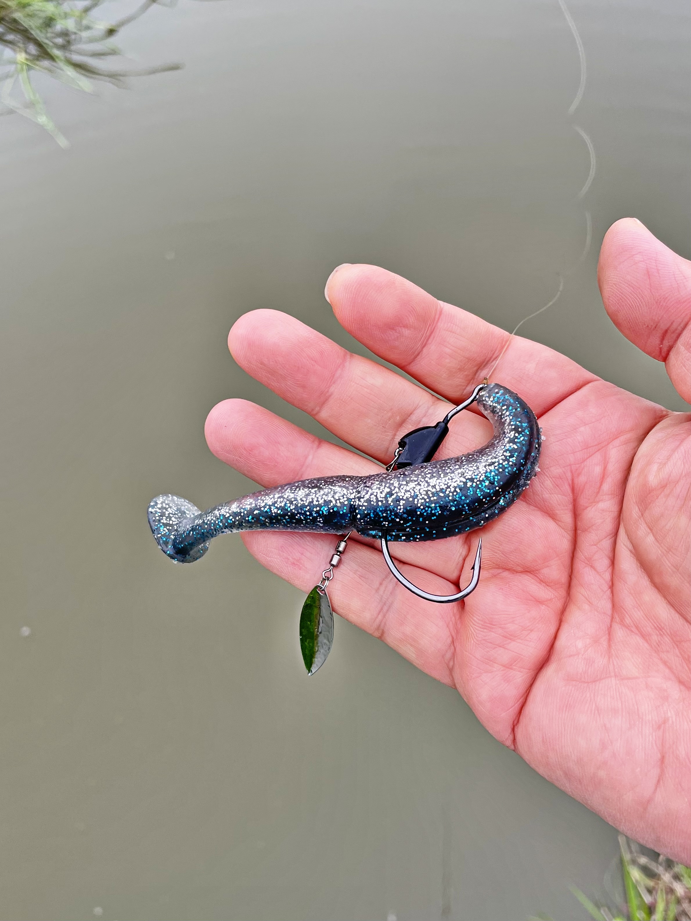 메가배스의 'TK트위스터' 웜의 카피품에 삽입 싱커 하나 박아서 가볍게..
