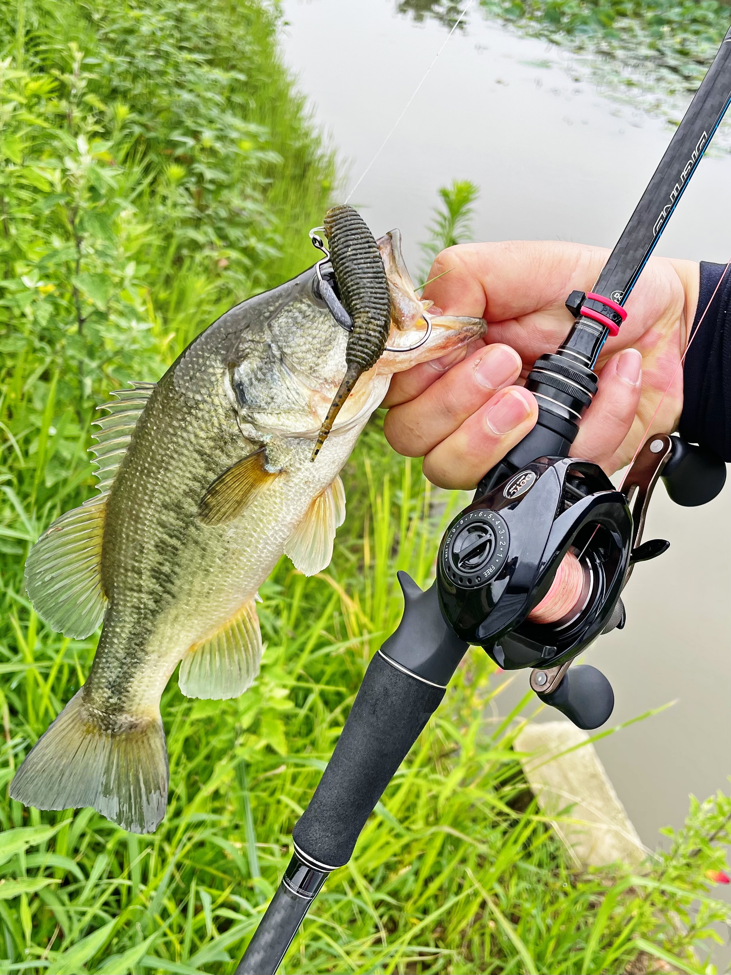 살며시~ 피칭으로 수초 사이에 떨구어 넣어 보았습니다.