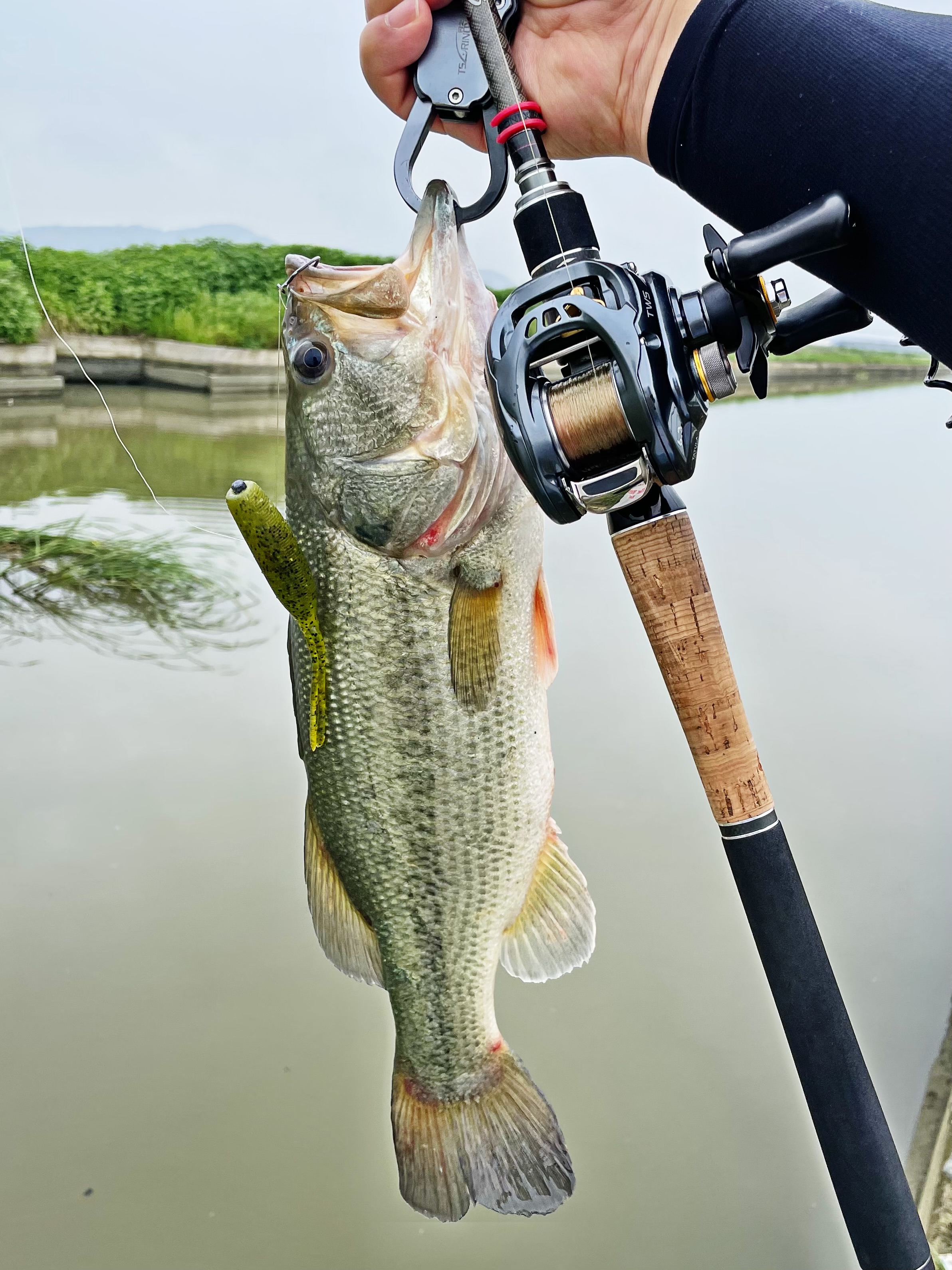 가운데 수초 군락이 있어 그 주변으로 던져서 살살 감아오니 드디어!