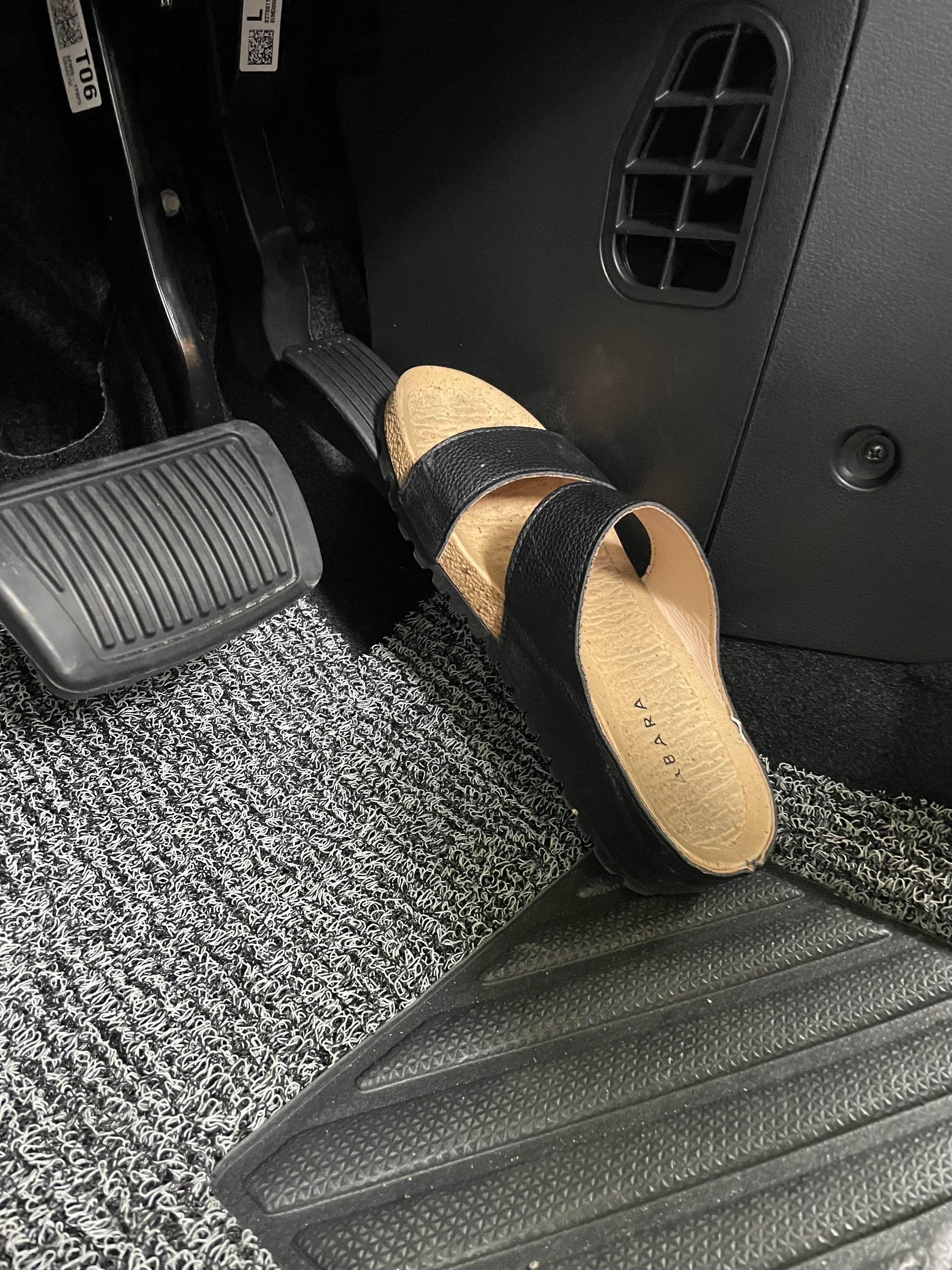 발이 얼마나 작길래 페달 밟는데 아프다는 건지 궁금해서 아내 신발을 몰래 가져와서 갖다 대봤습니다.