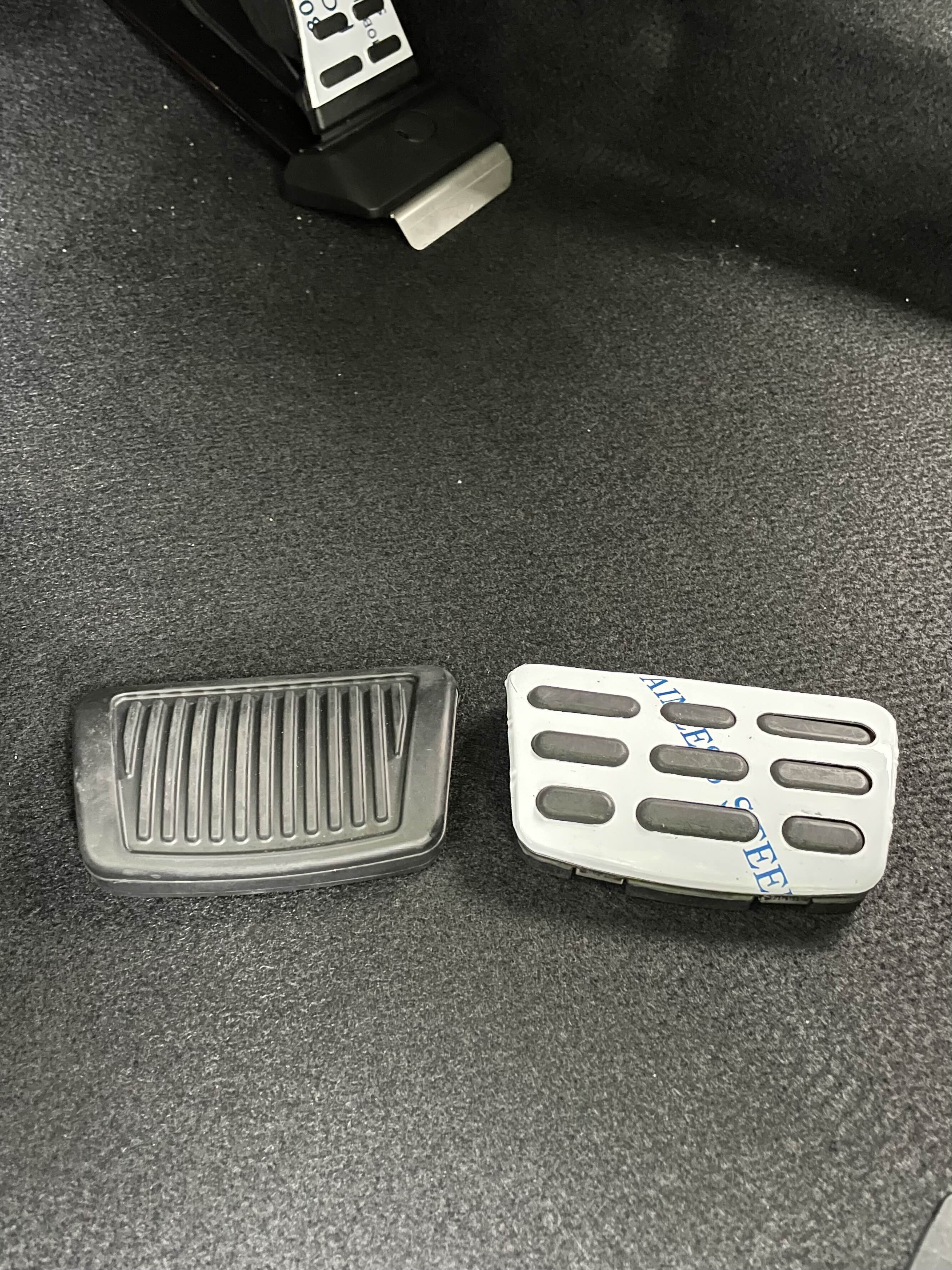 순정 부품과 스포츠페달을 비교해 보면 사이즈는 동일하고 스포츠 페달은 쇠 재질에 고무 재질이 함께 결합된 방식입니다.