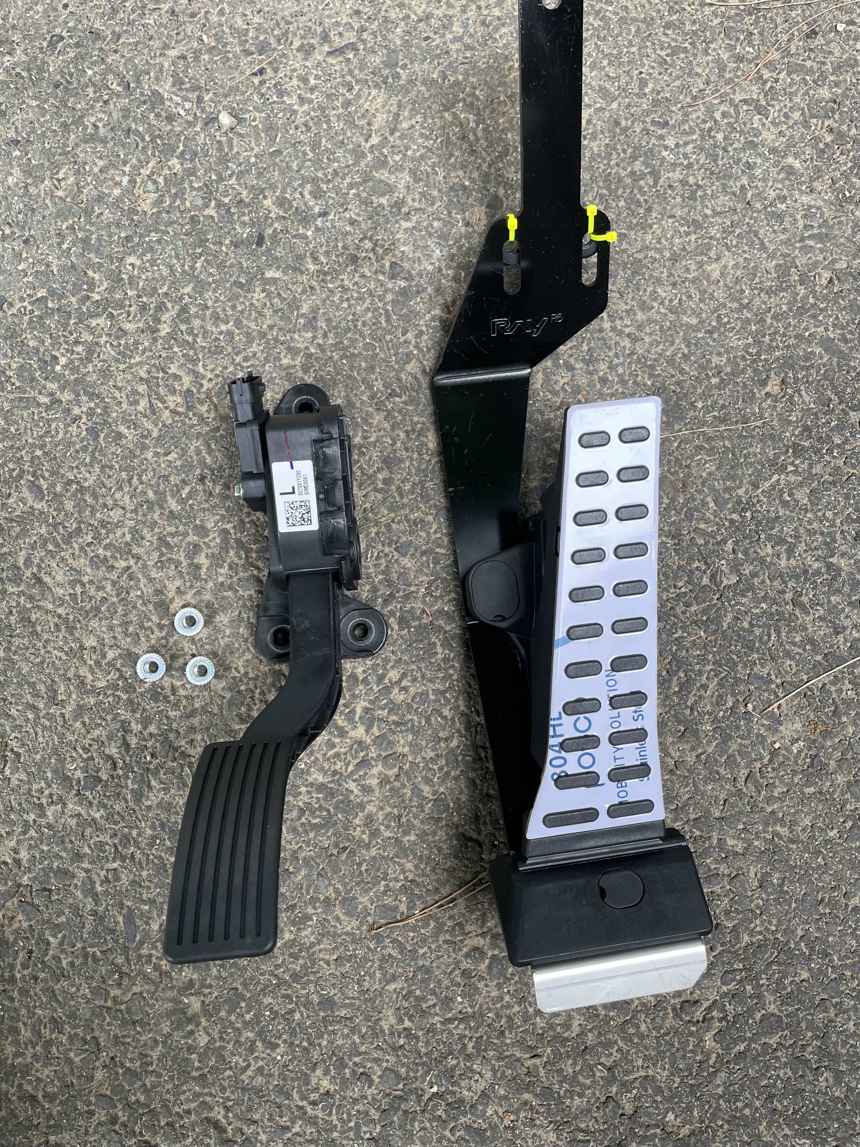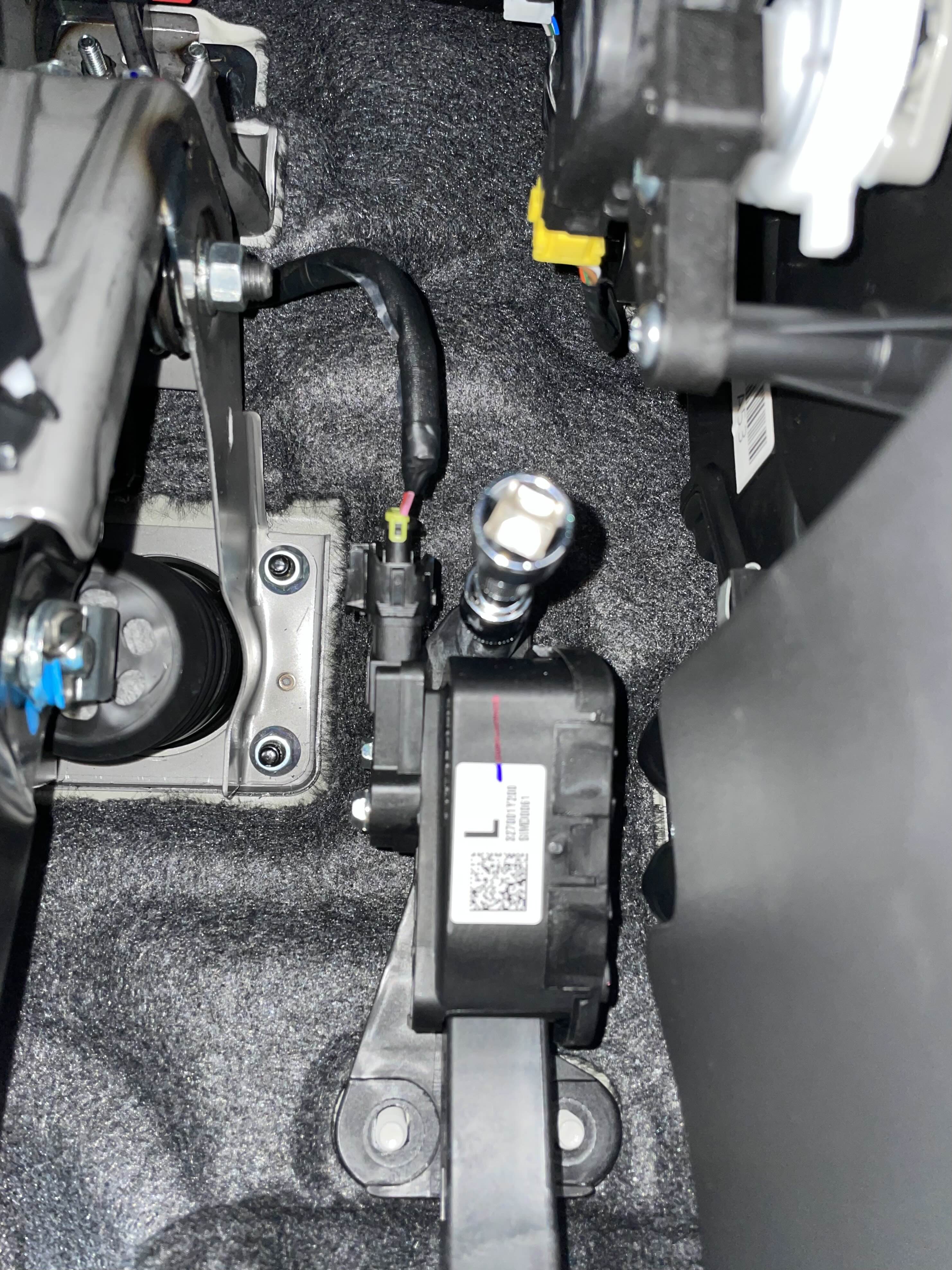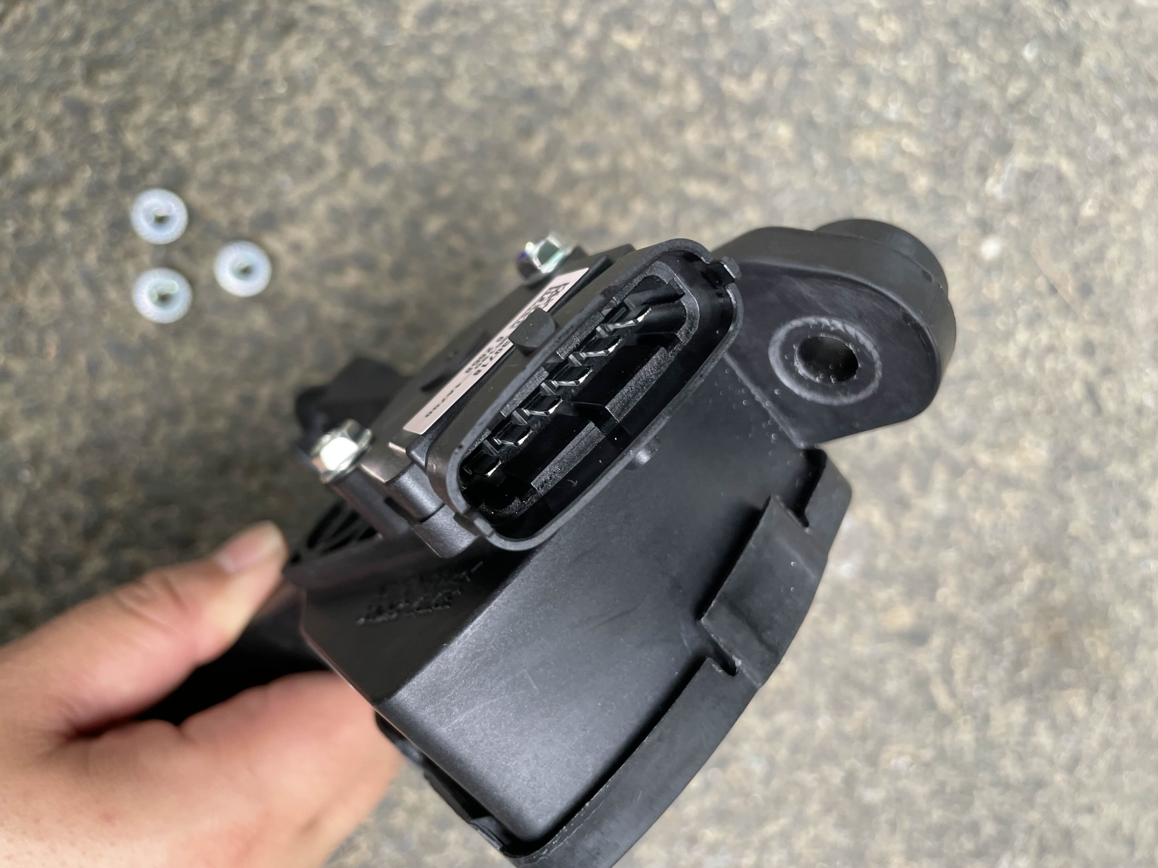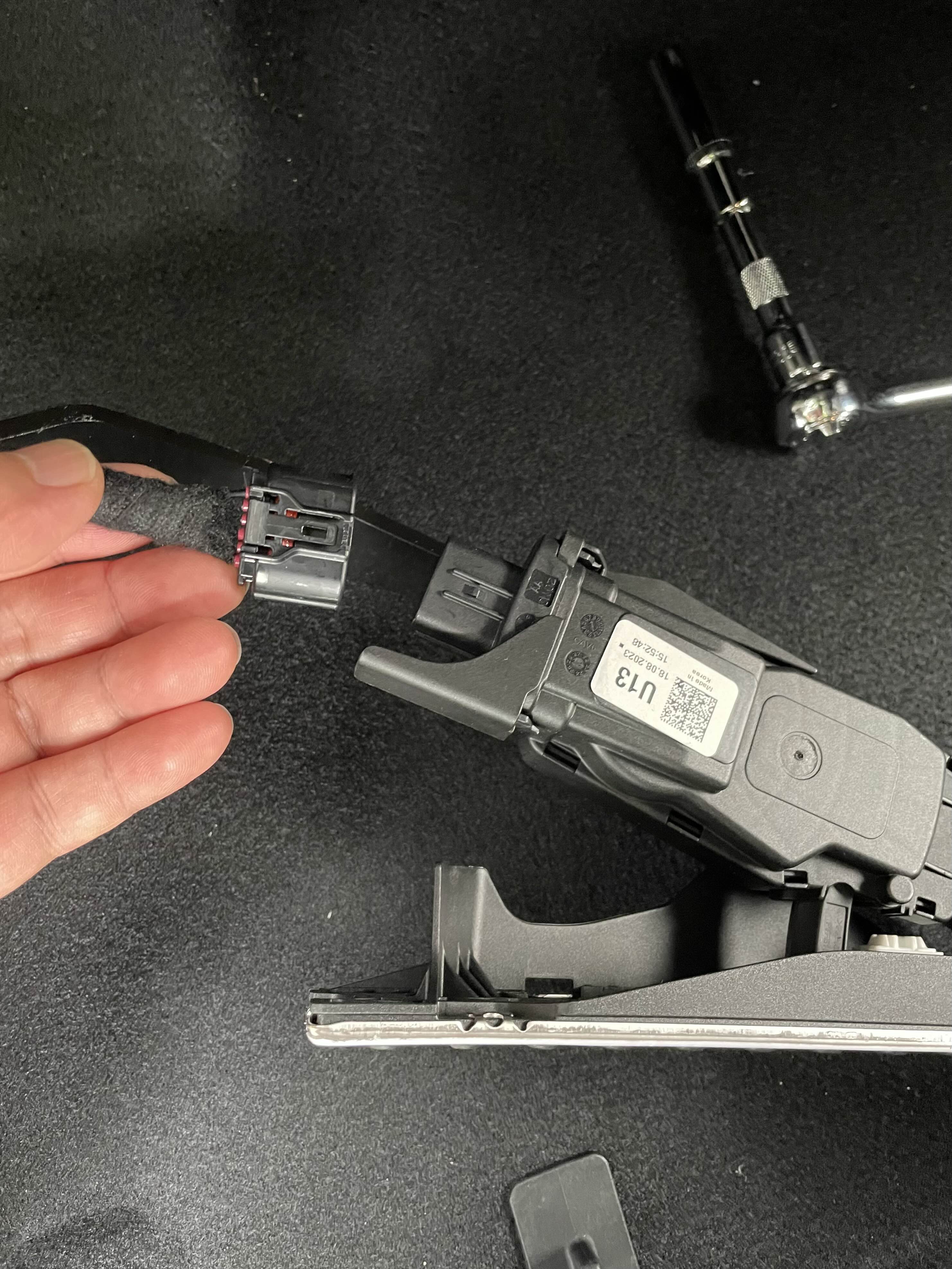 순정 페달 분리는 위에 보시는 것처럼 12mm 너트 3개를 풀고 위에 연결된 케이블을 커넥터에서 분리하면 됩니다.