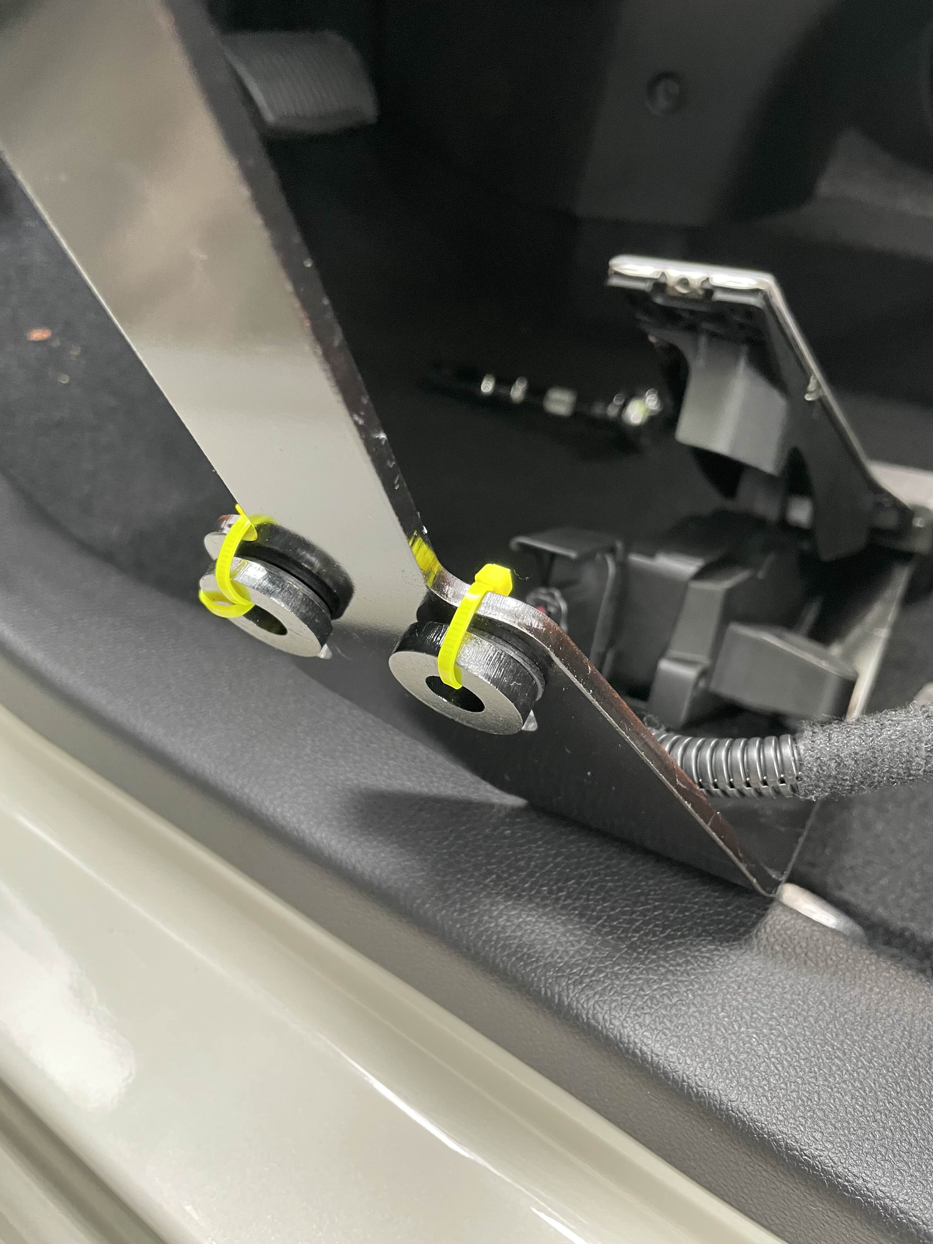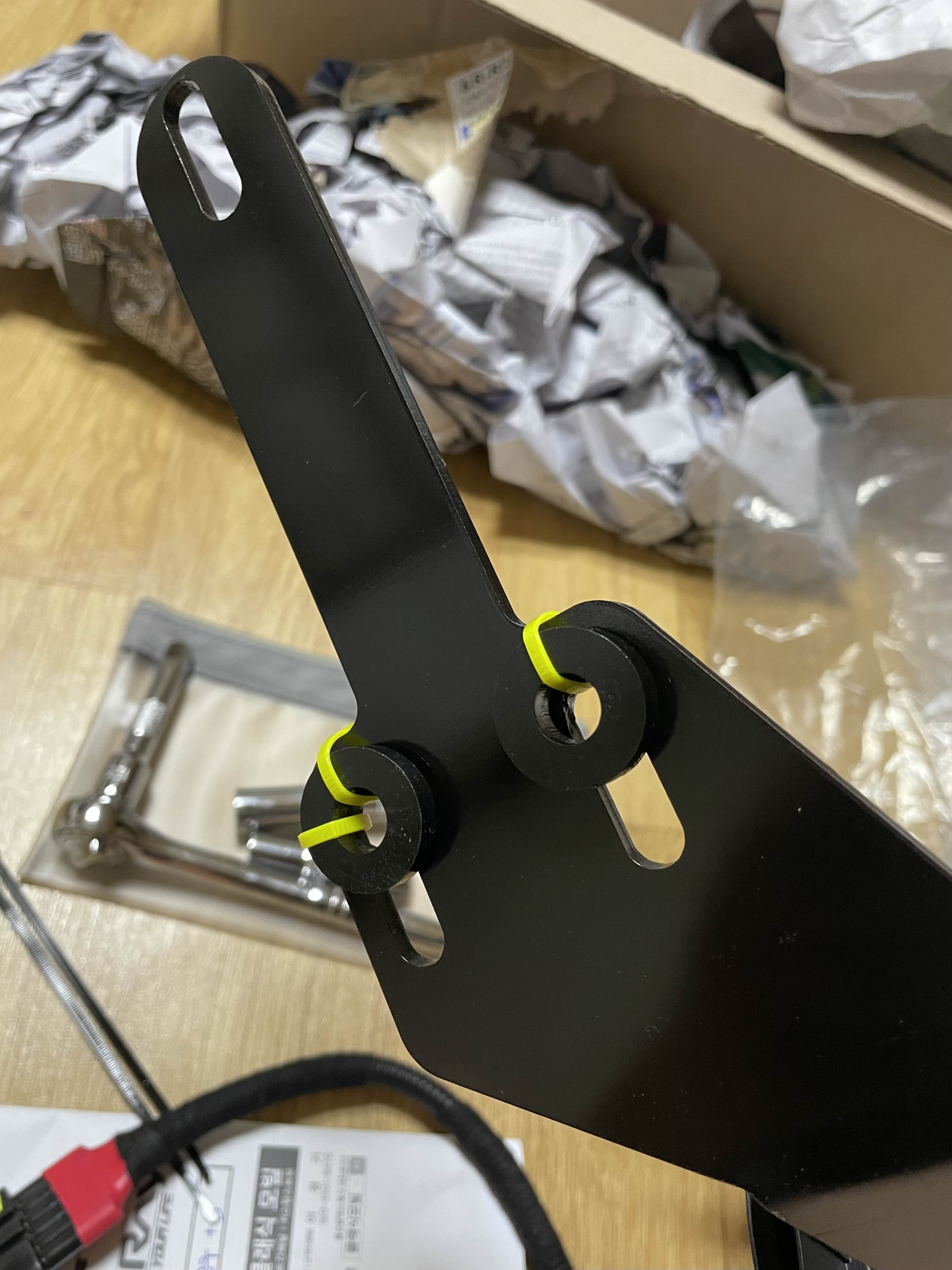 차량에 장착 시 사용하는 와셔는 잃어버리지 않도록 노란색 케이블 타이로 해당 위치에 체결해 놓으셨습니다.