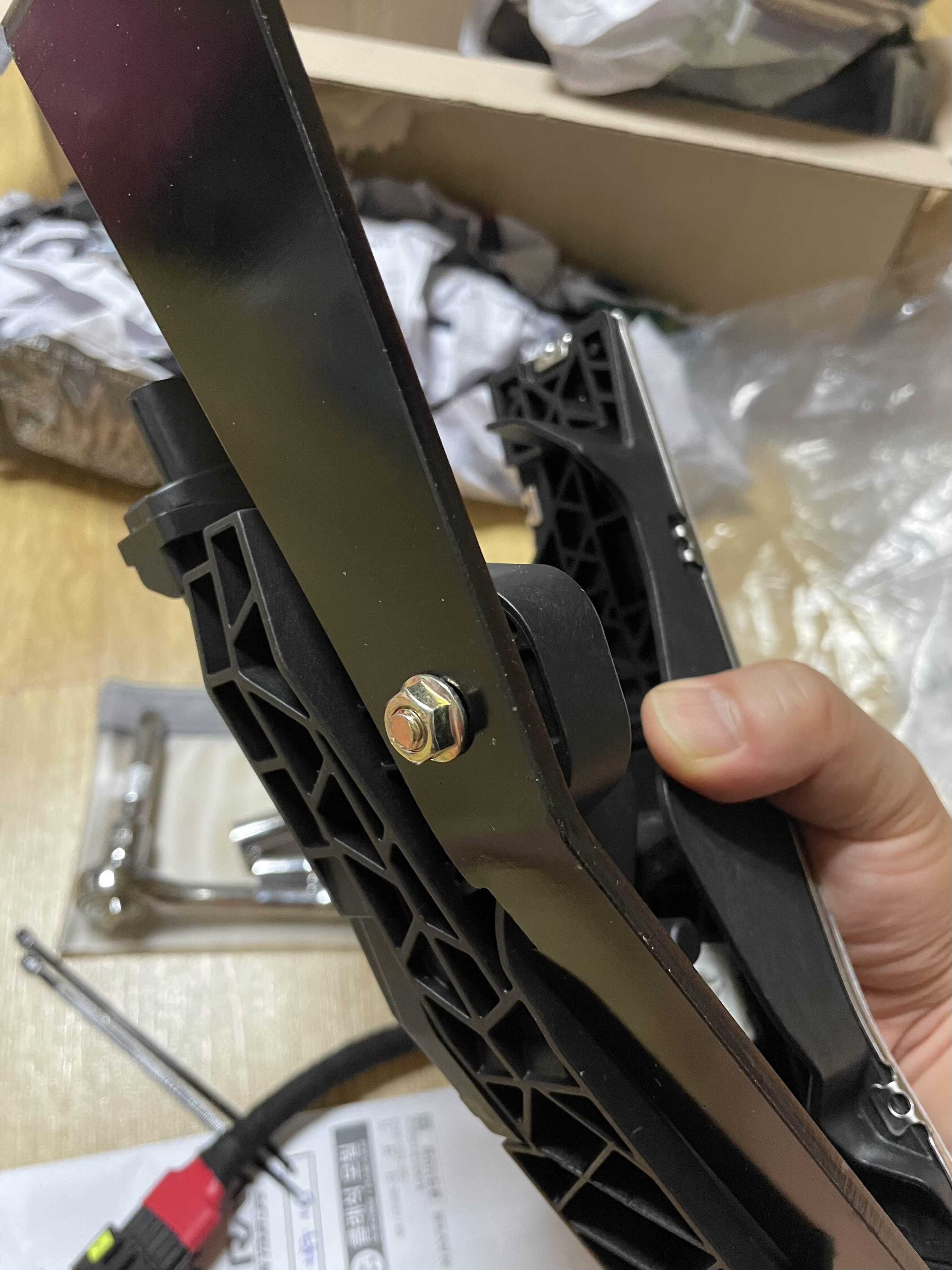 브라켓에 나사 구멍이 길게 되어 있기 때문에 나사를 조일 때 페달 전체를 아래쪽으로 최대한 눌러서 당겨주면서 조여줘야 나중에 움직이지 않습니다.