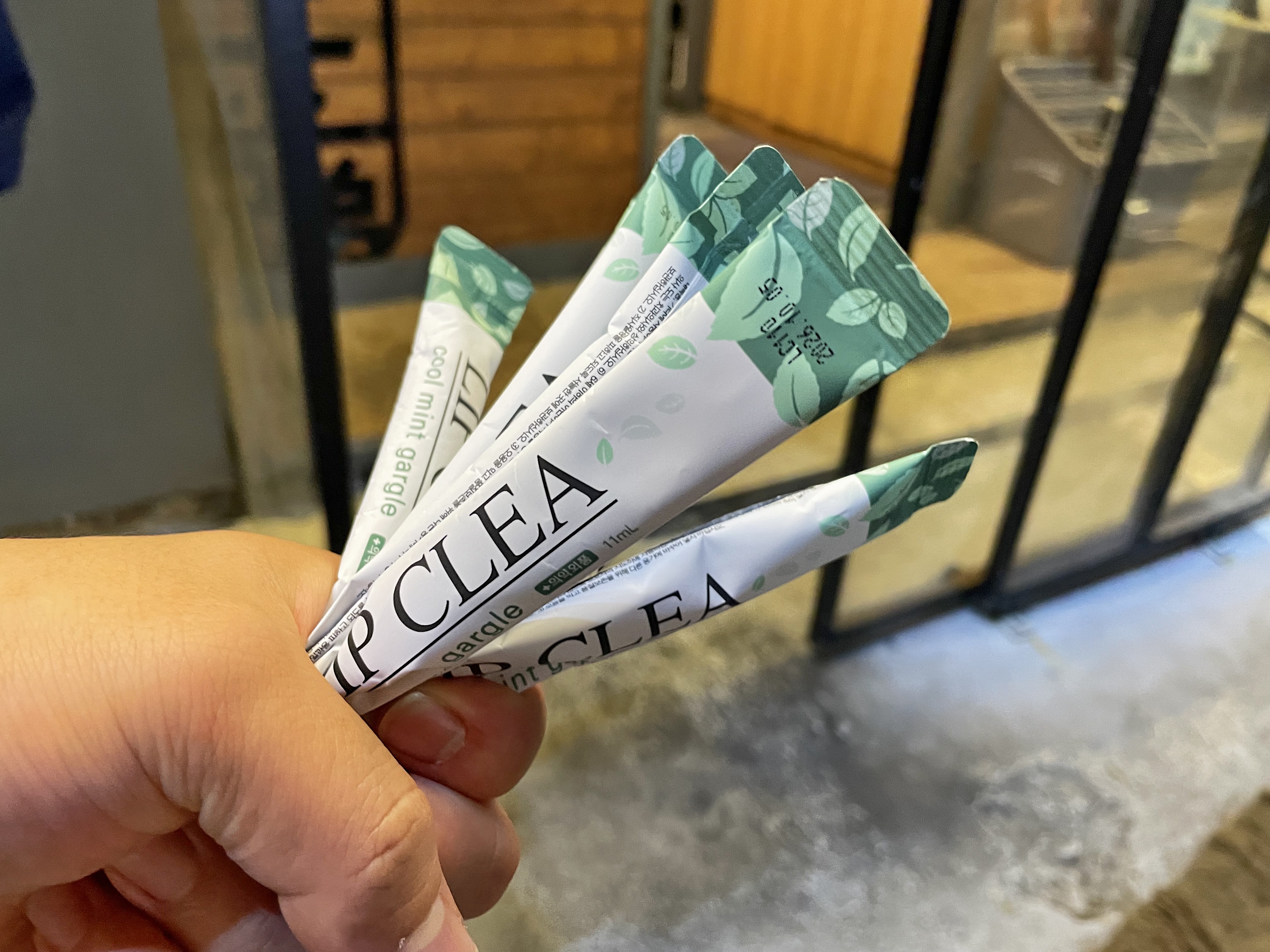 계산하고 나왔는데 동료의 손에 들린 스틱형 제품은 숙취 해소제는 아니고, 식당에서 무료로 제공하는 가글 제품이었습니다.