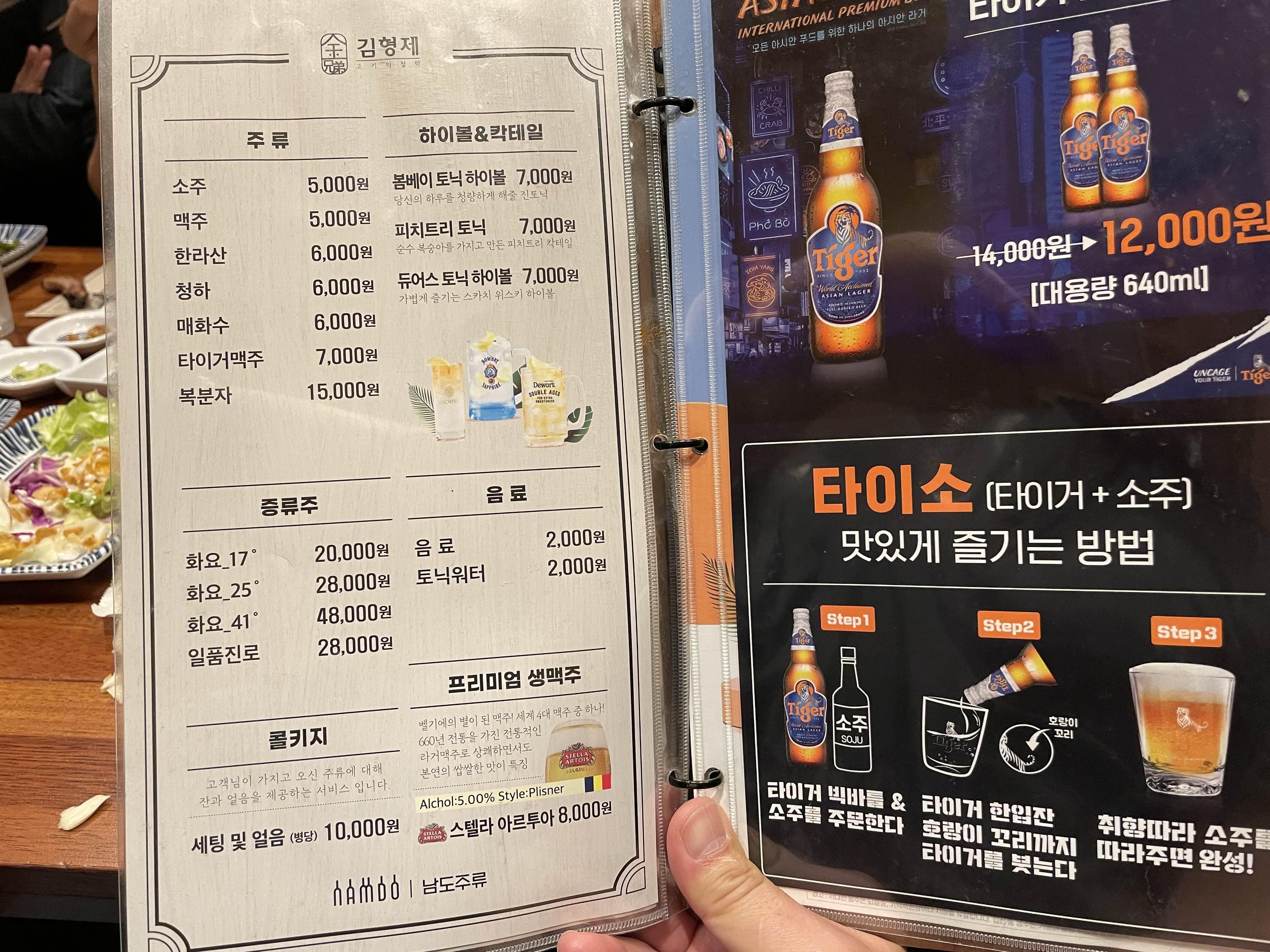 한라산, 타이거 맥주, 화요, 하이볼, 생맥주 등 다양한 음료를 함께 맛볼 수 있다는 점도 좋은 것 같습니다.