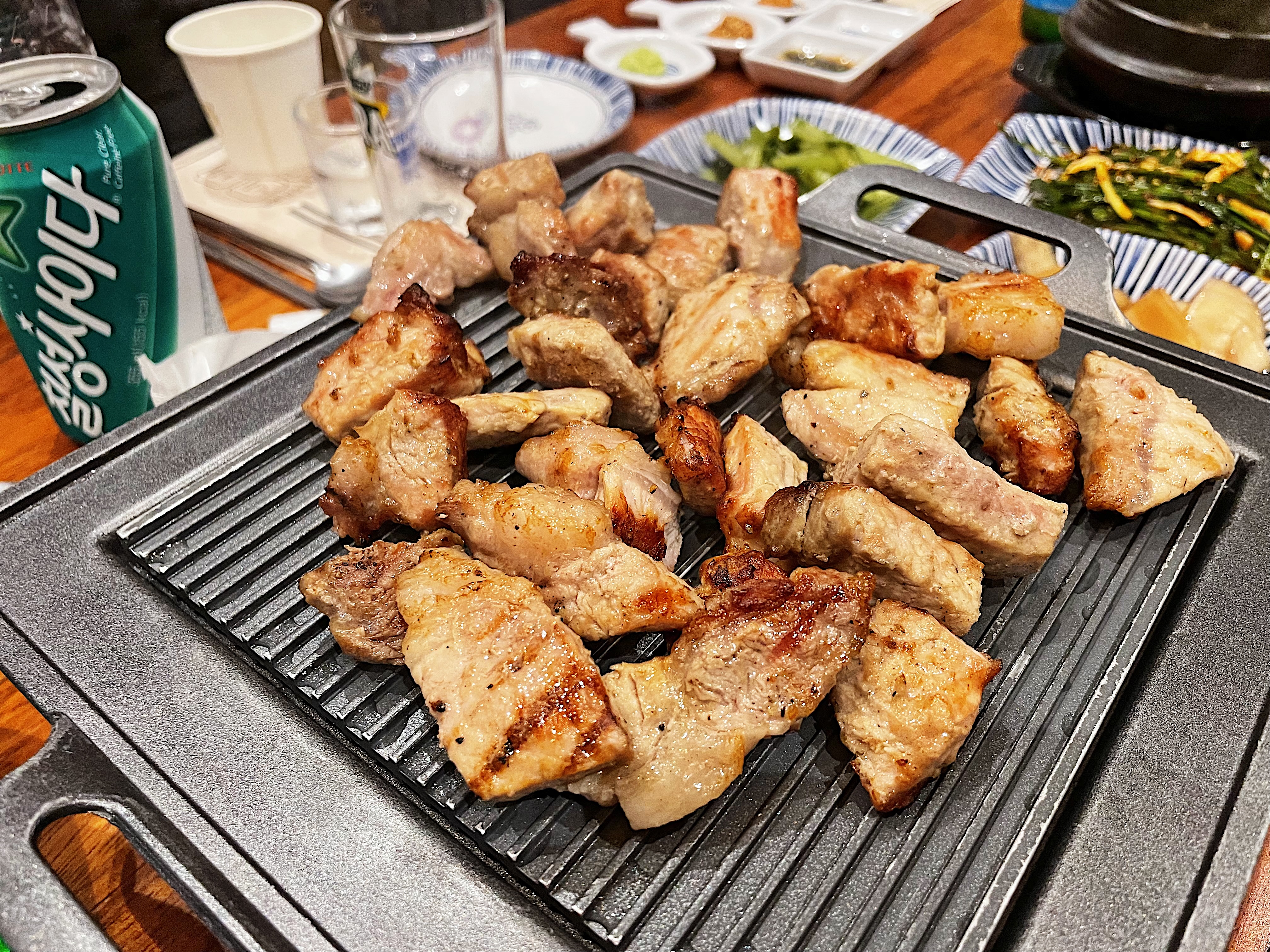 추가 주문한 항정살은 쫄깃한 식감이 좋았는데, 기름이 많은 부위라 느끼해서 많이 먹지는 못하겠더라구요.