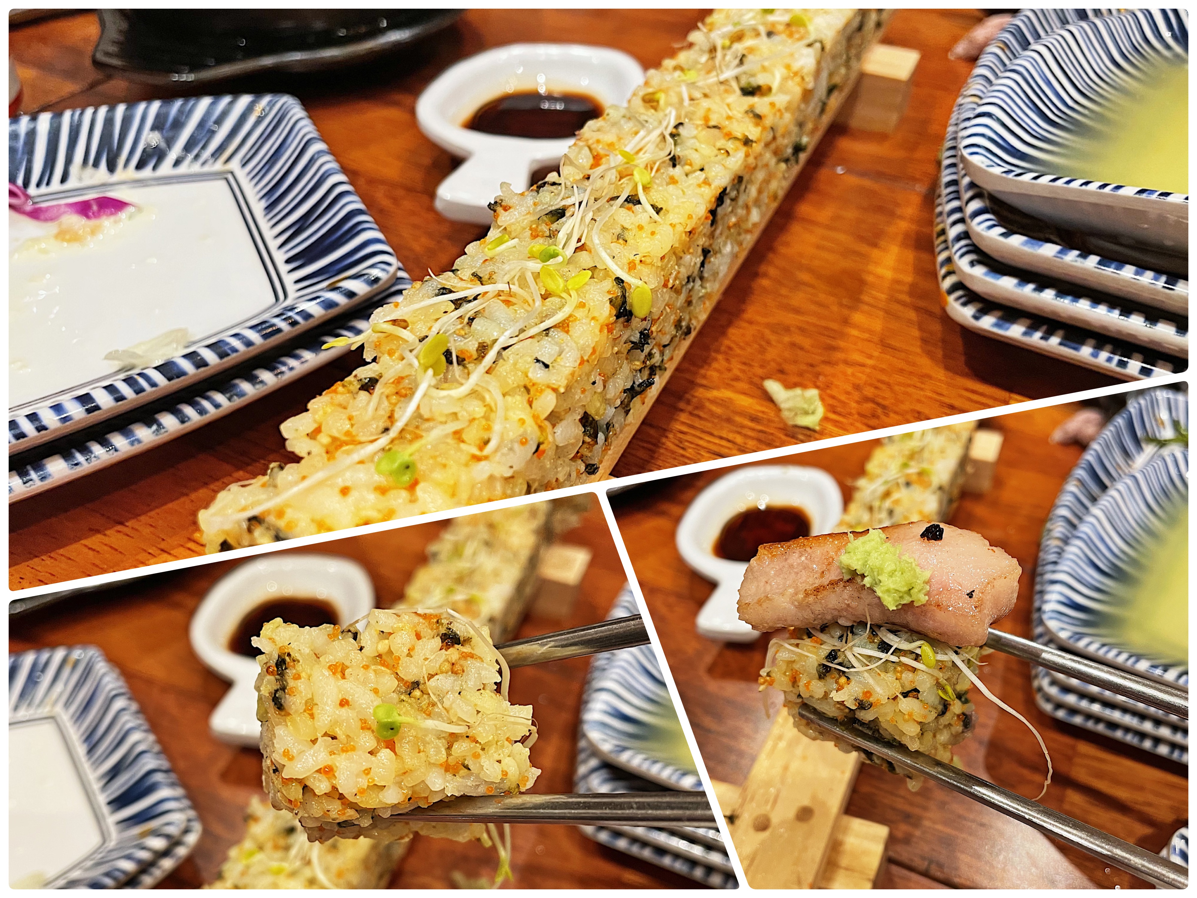 사장님께서 저희가 기다린 게 미안하셨던지 서비스로 “날치알 사각 주먹밥”을 테이블마다 하나씩 내어주셨습니다.